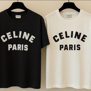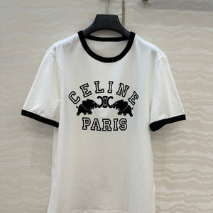 Celine Letter Logo Short-sleeved T-shirt Black and White Cotton