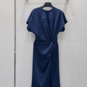 Celine 25 Twisted Waist Dress Navy Blue Cotton