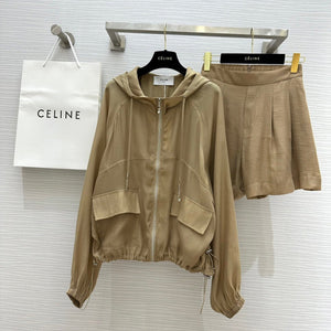 Celine Straight Blouson Jacket and Skirt in Black Suede