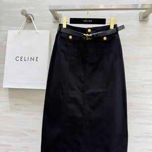 Celine 25 Denim Skirt with Logo Belt Black Cotton