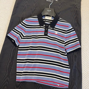 Celine 2025 Striped Polo Shirt Blue Black White Cotton