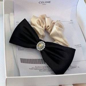 WHITE MIX BLACK SILK SCRUNCHIE 420657
