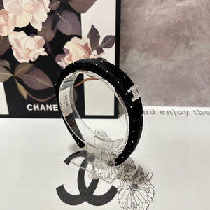 BLACK VELVET HAIRBAND WITH GOLD LOGO 423596