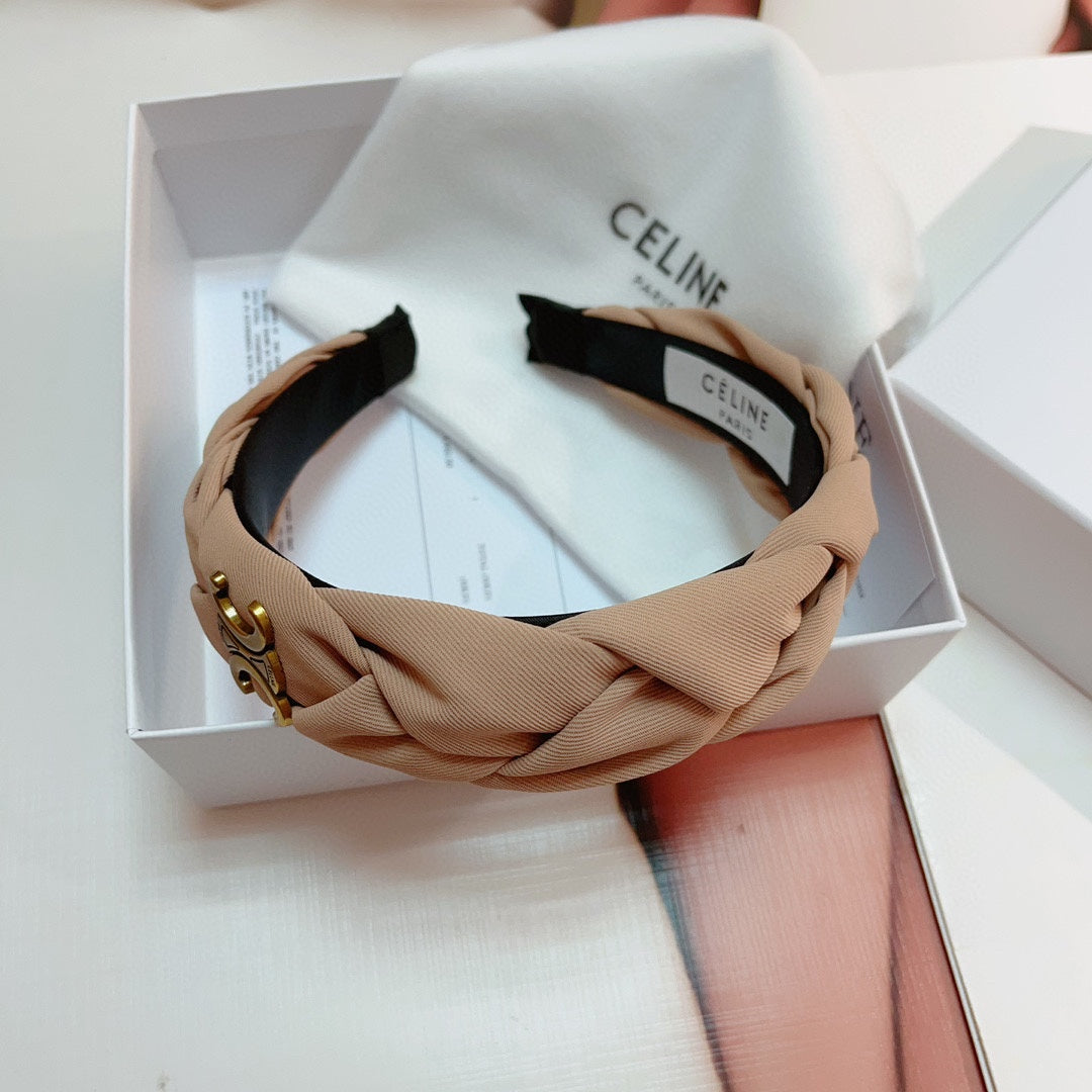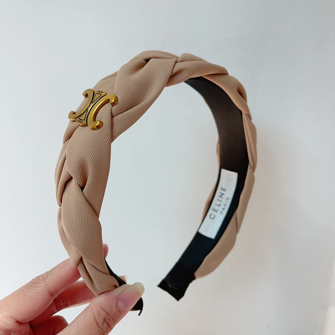 CAMEL BEIGE FABRIC HAIRBAND WITH GOLD LOGO 124700