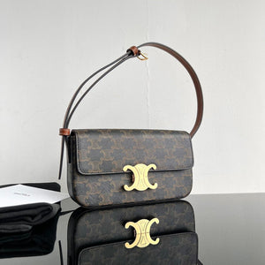 Celine Ava Bag 23cm Triomphe Canvas Black Dark Brown Calfskin