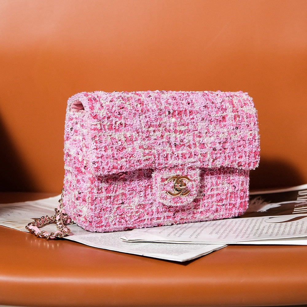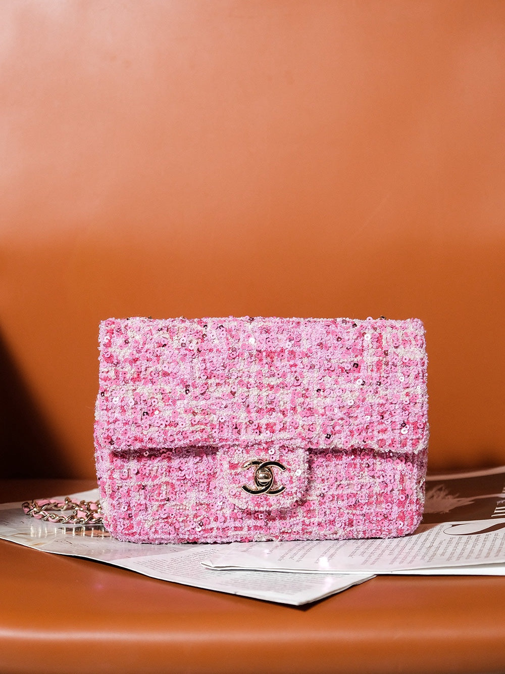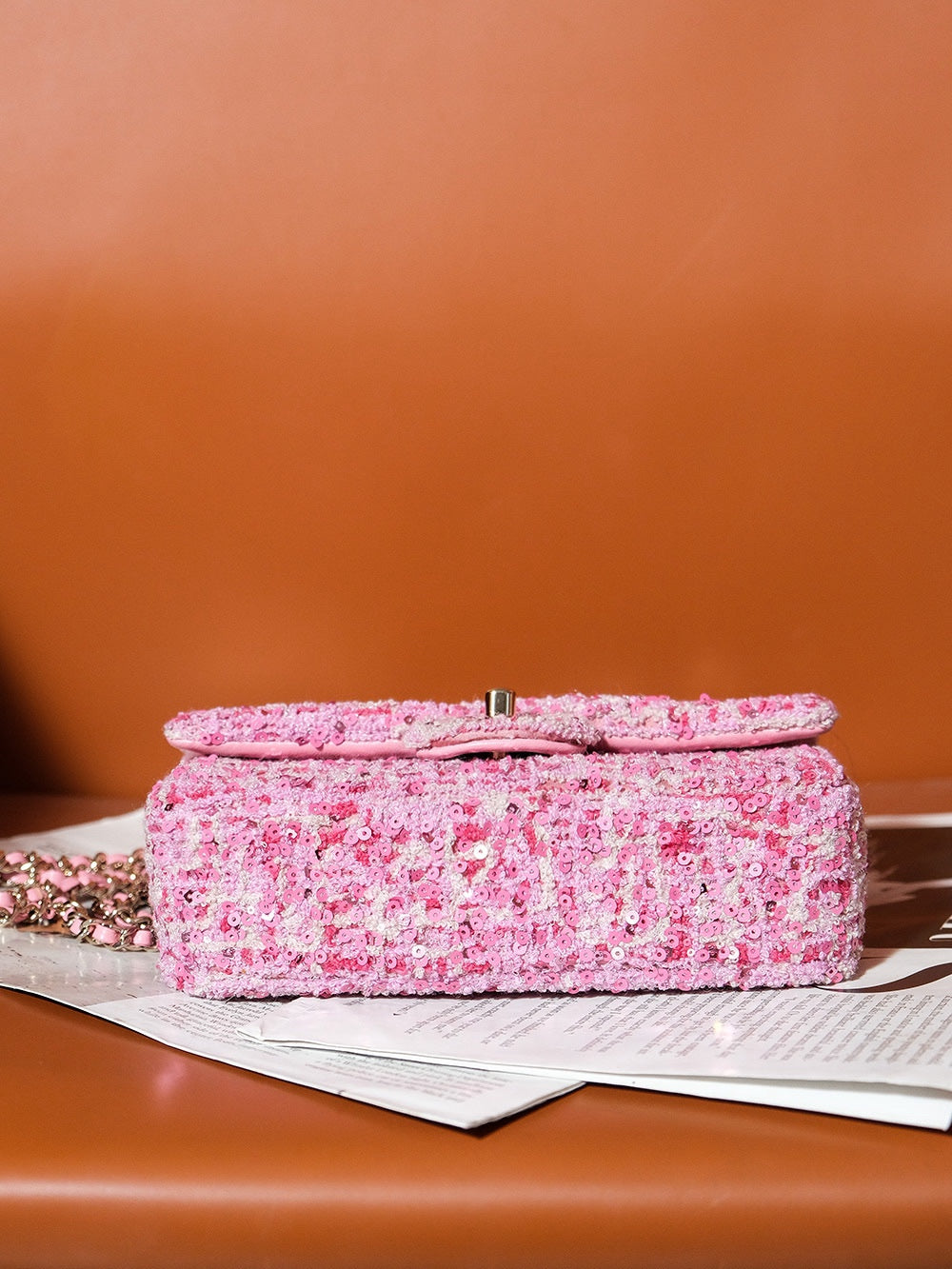 24S Flap Bag 20cm Pink White Sequin Calfskin