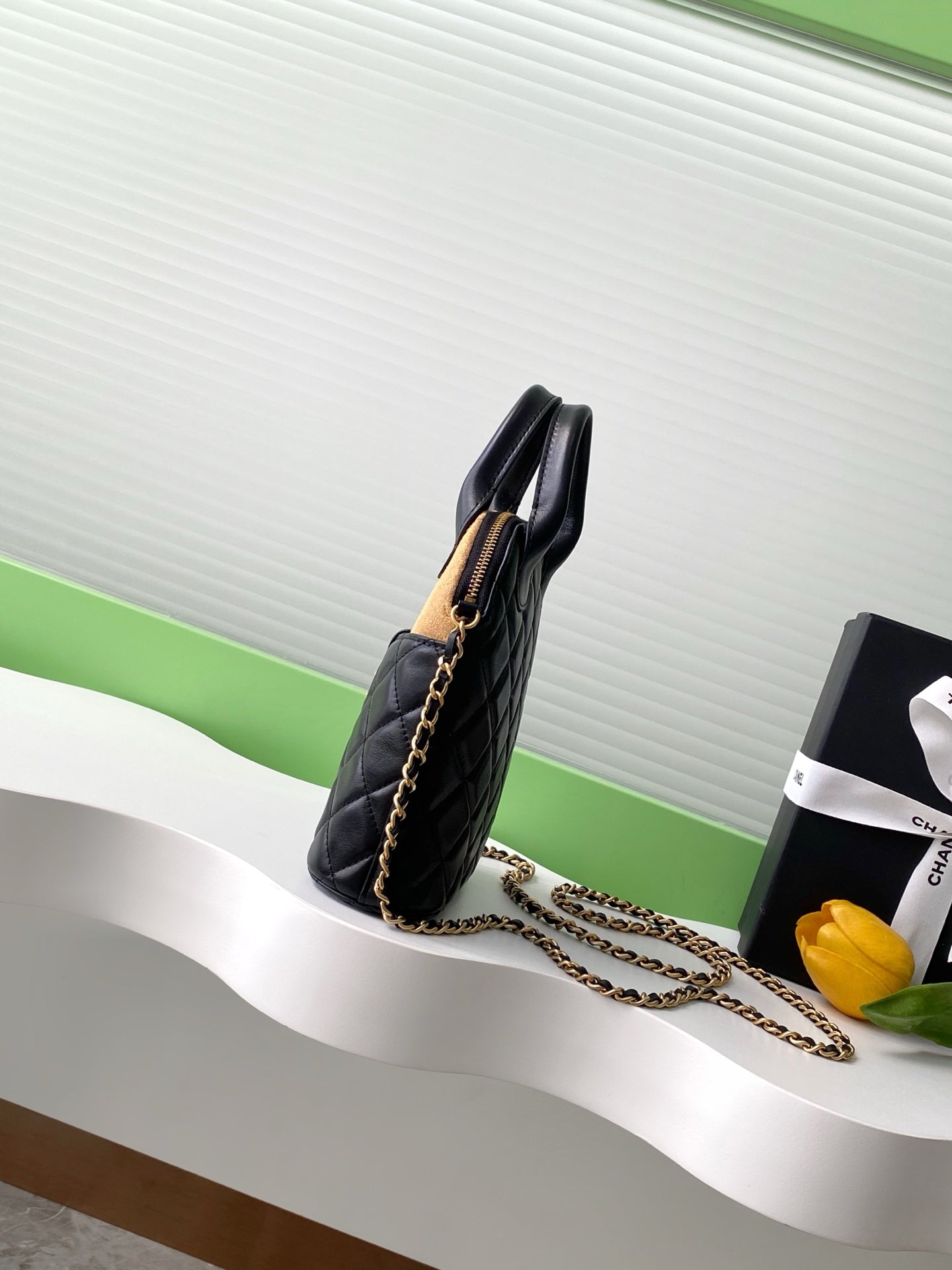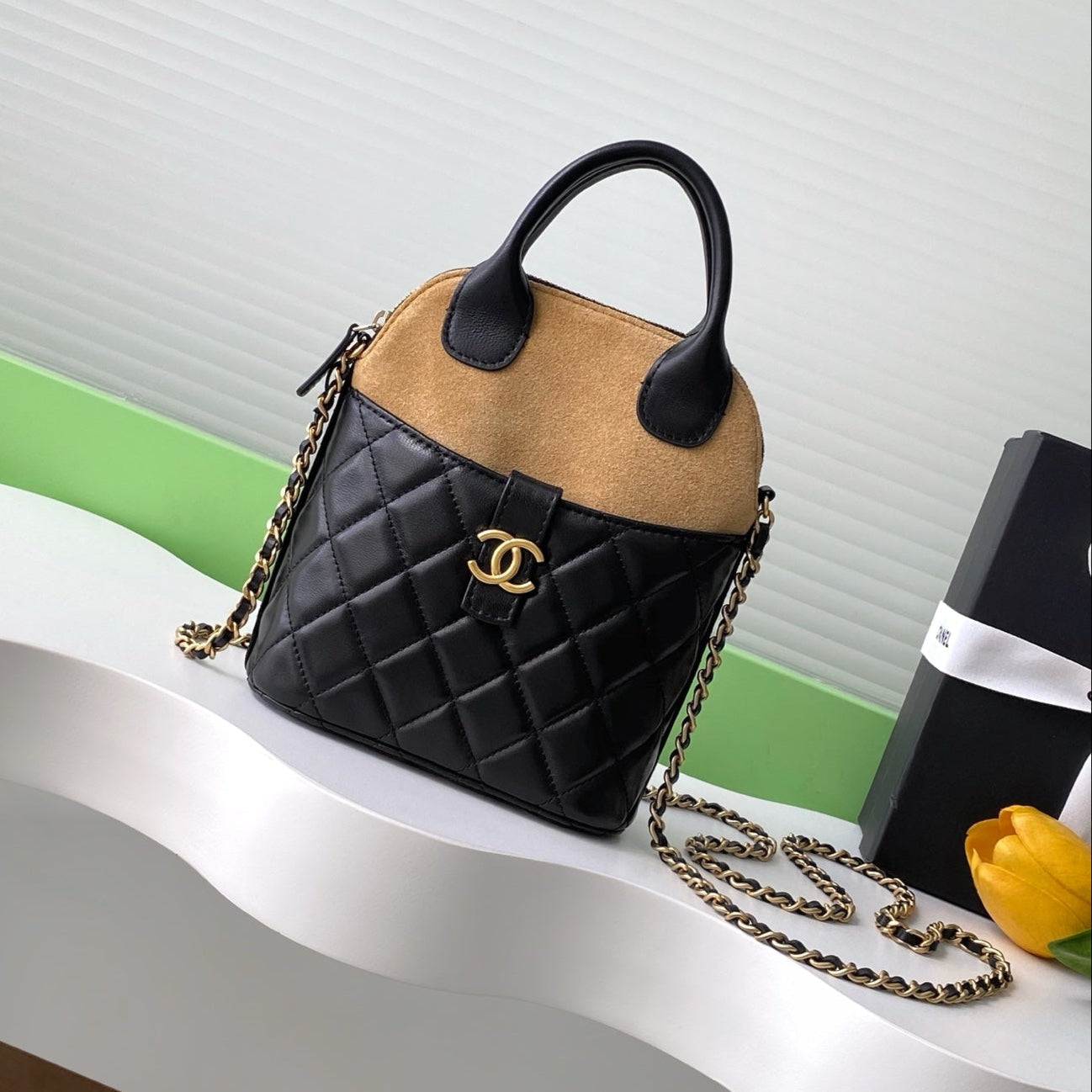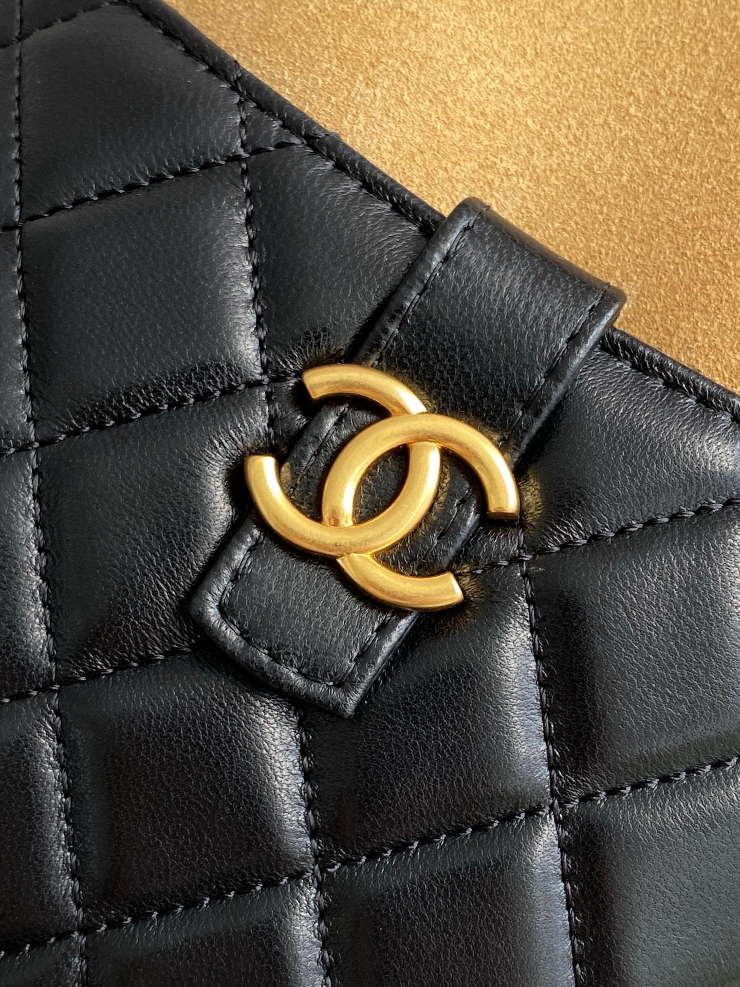 CC 25A Clutch With Chain 18cm Beige Suede Black Calfskin
