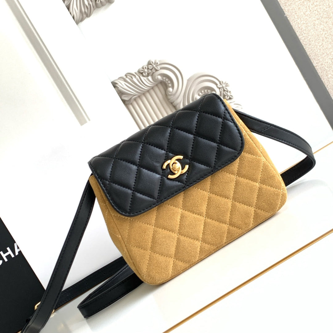 CC 25A Shoulder Bag 18.5cm Brown Black Suede