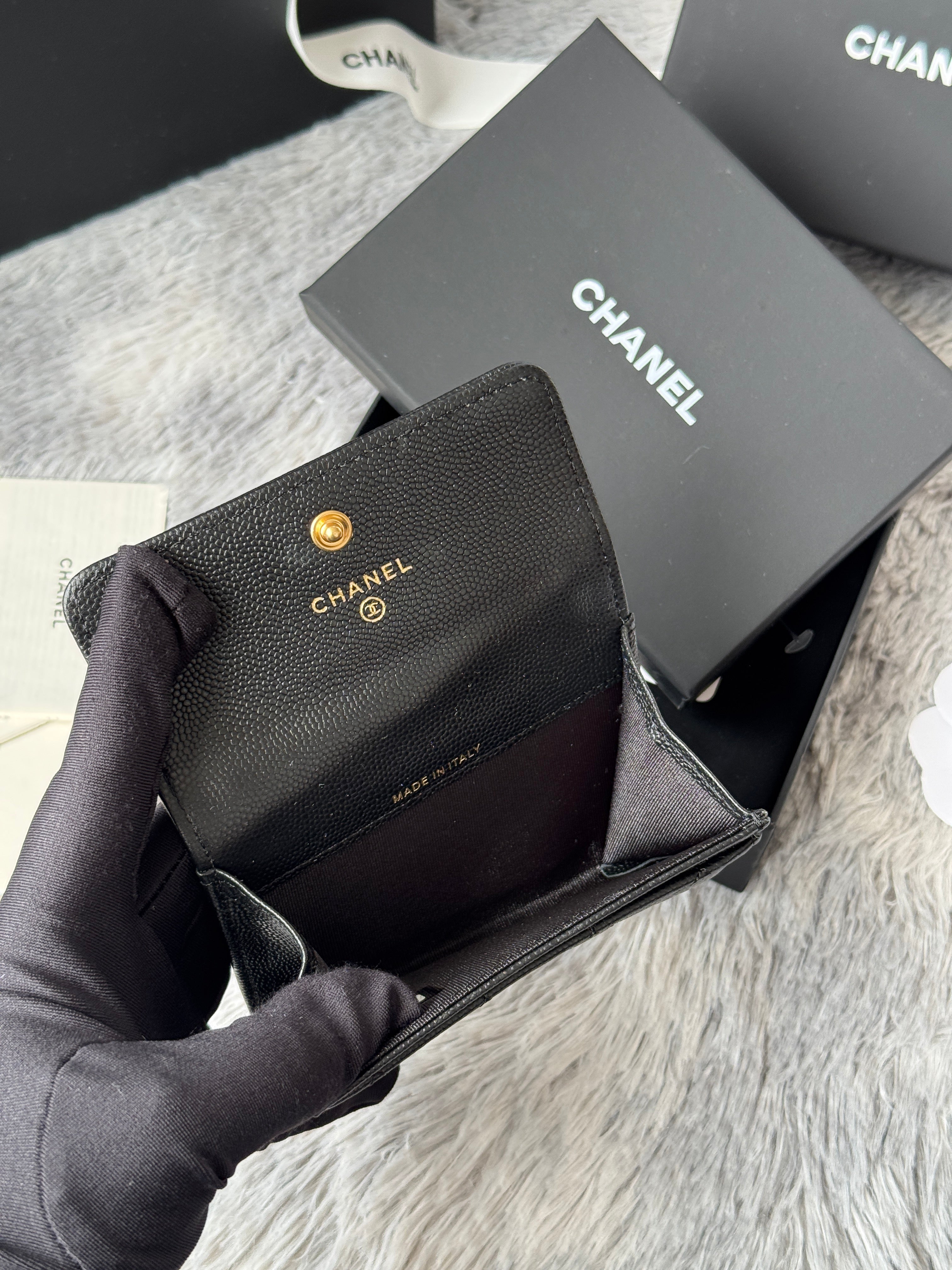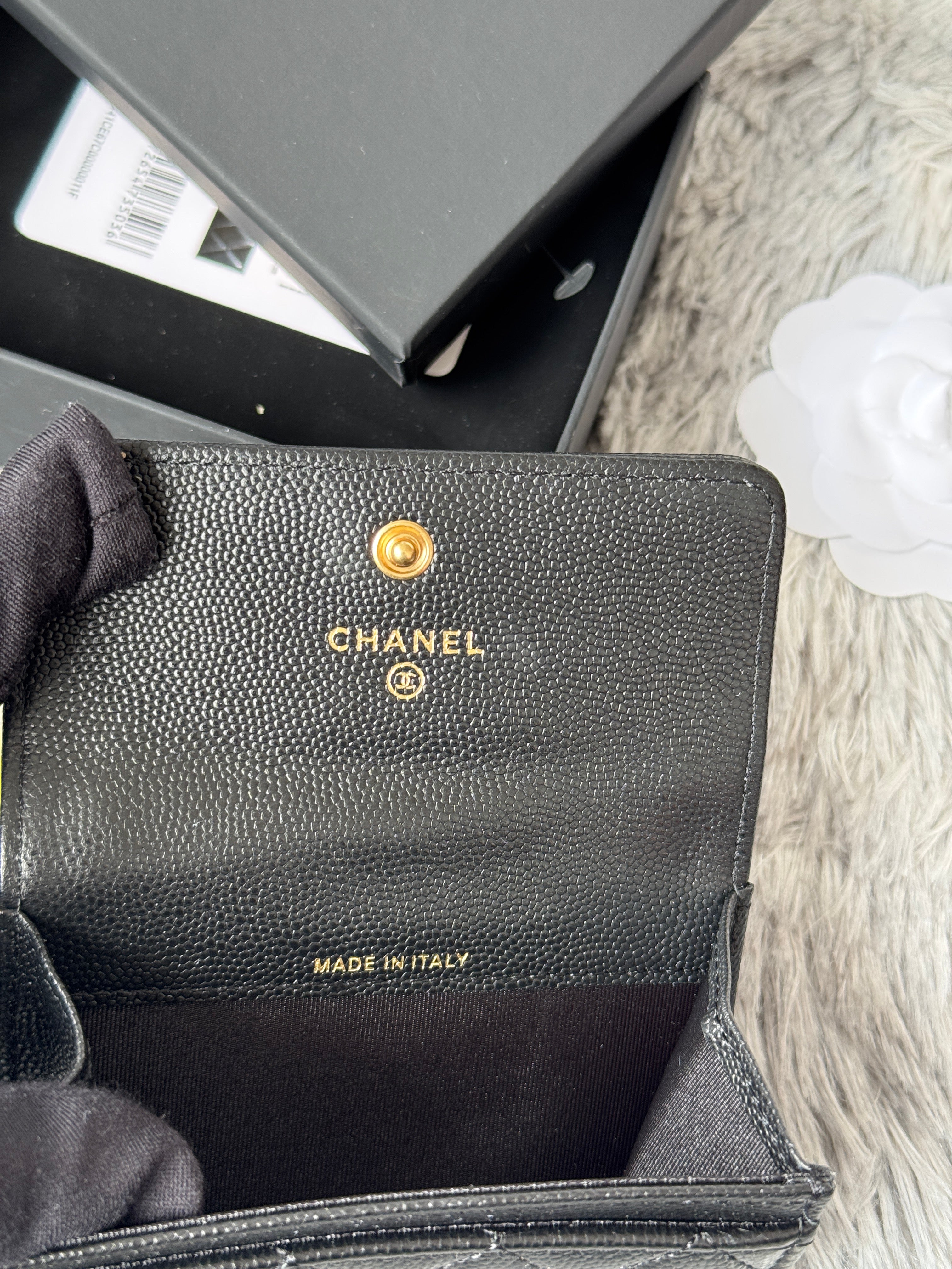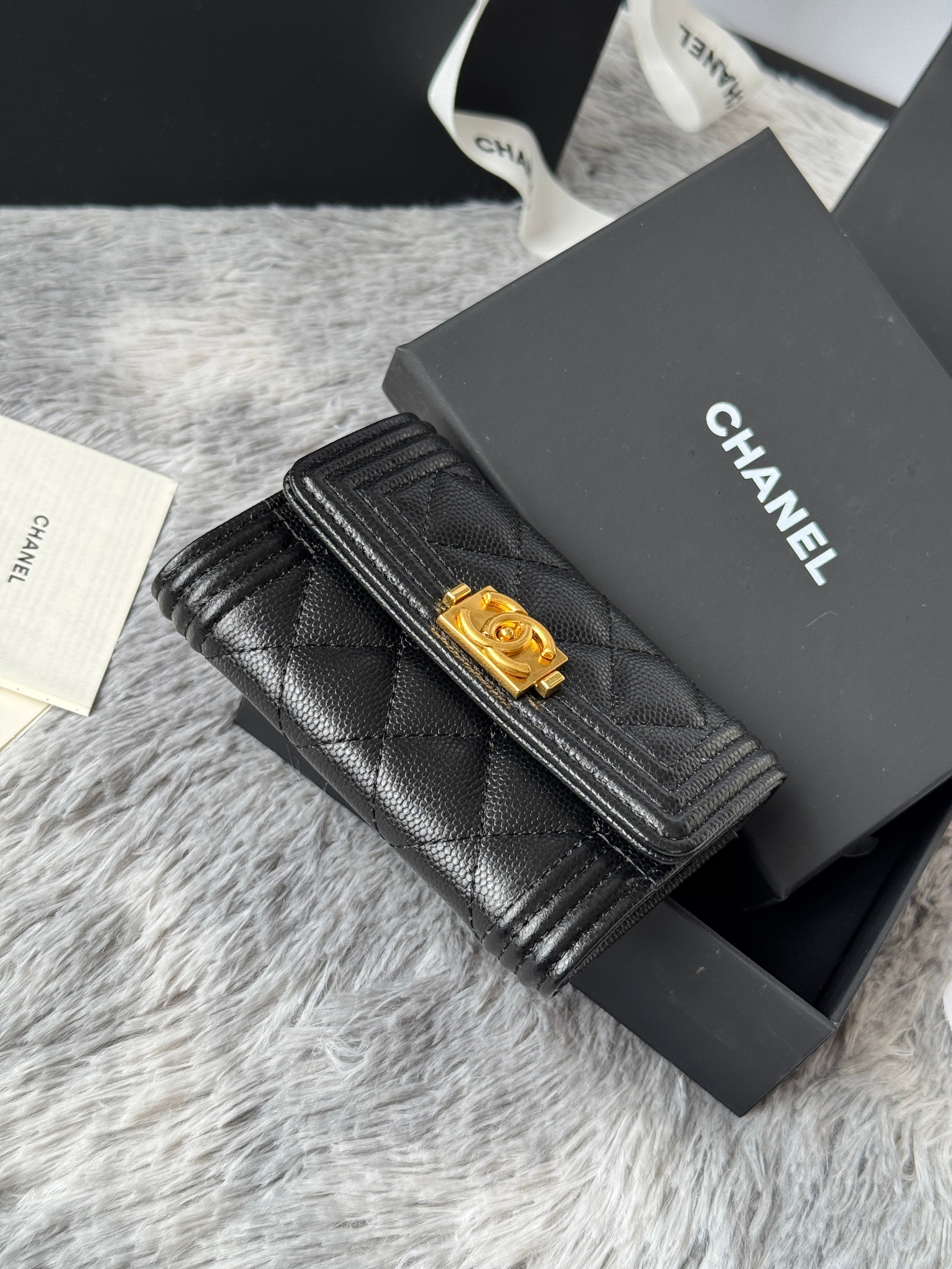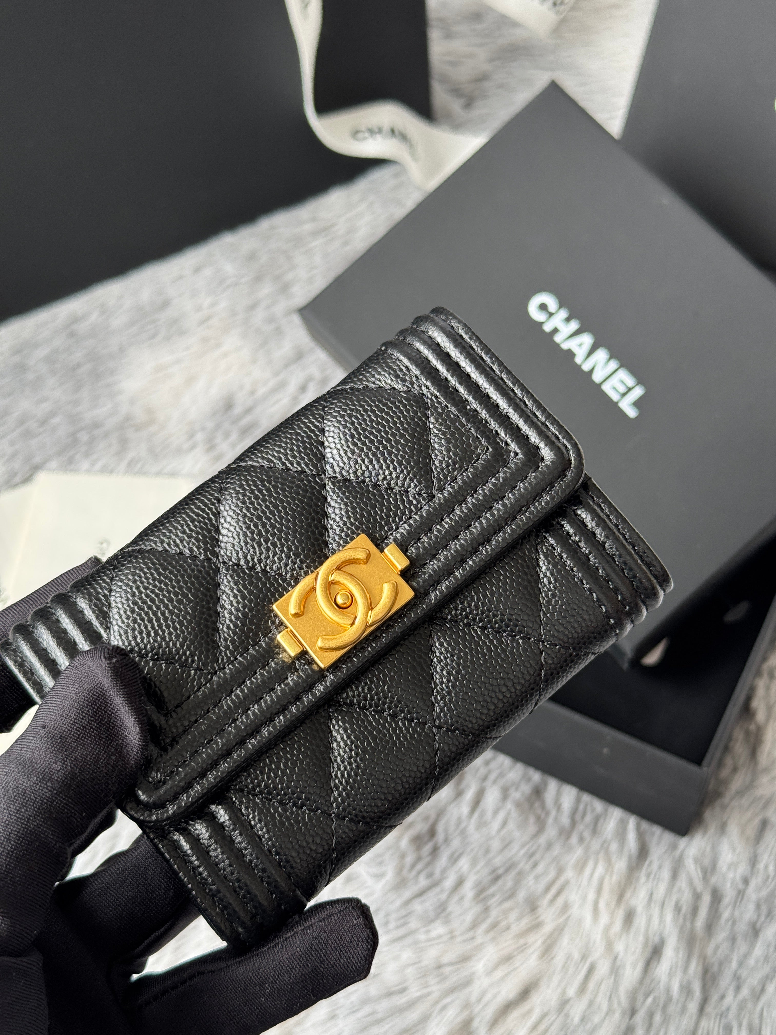 CC Boy Flap Card Holder Black Gold-tone Grained Calfskin 242866