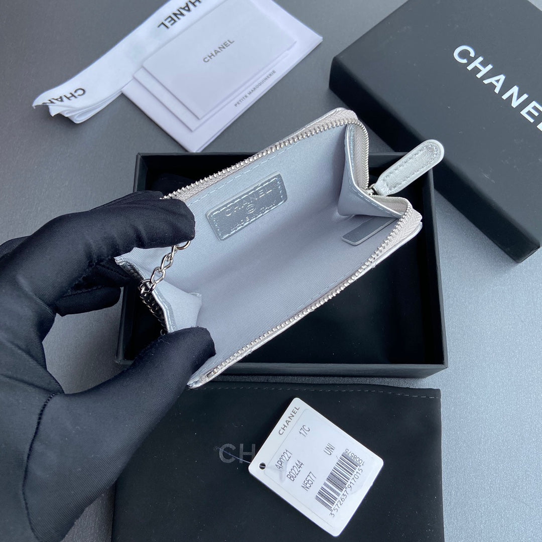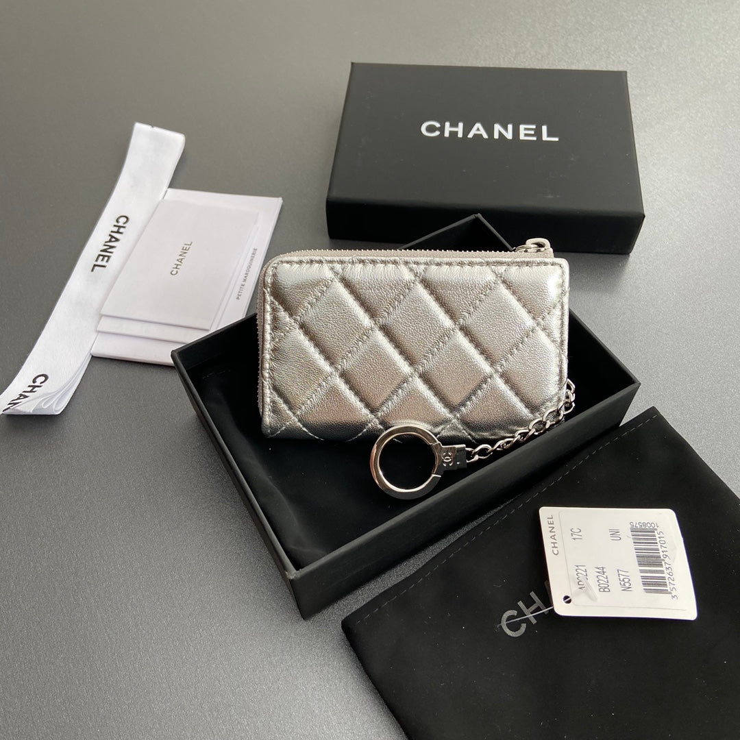 CC Hook & Chain Zipper Card Holder Sliver Sheepskin Sliver Steel 234719