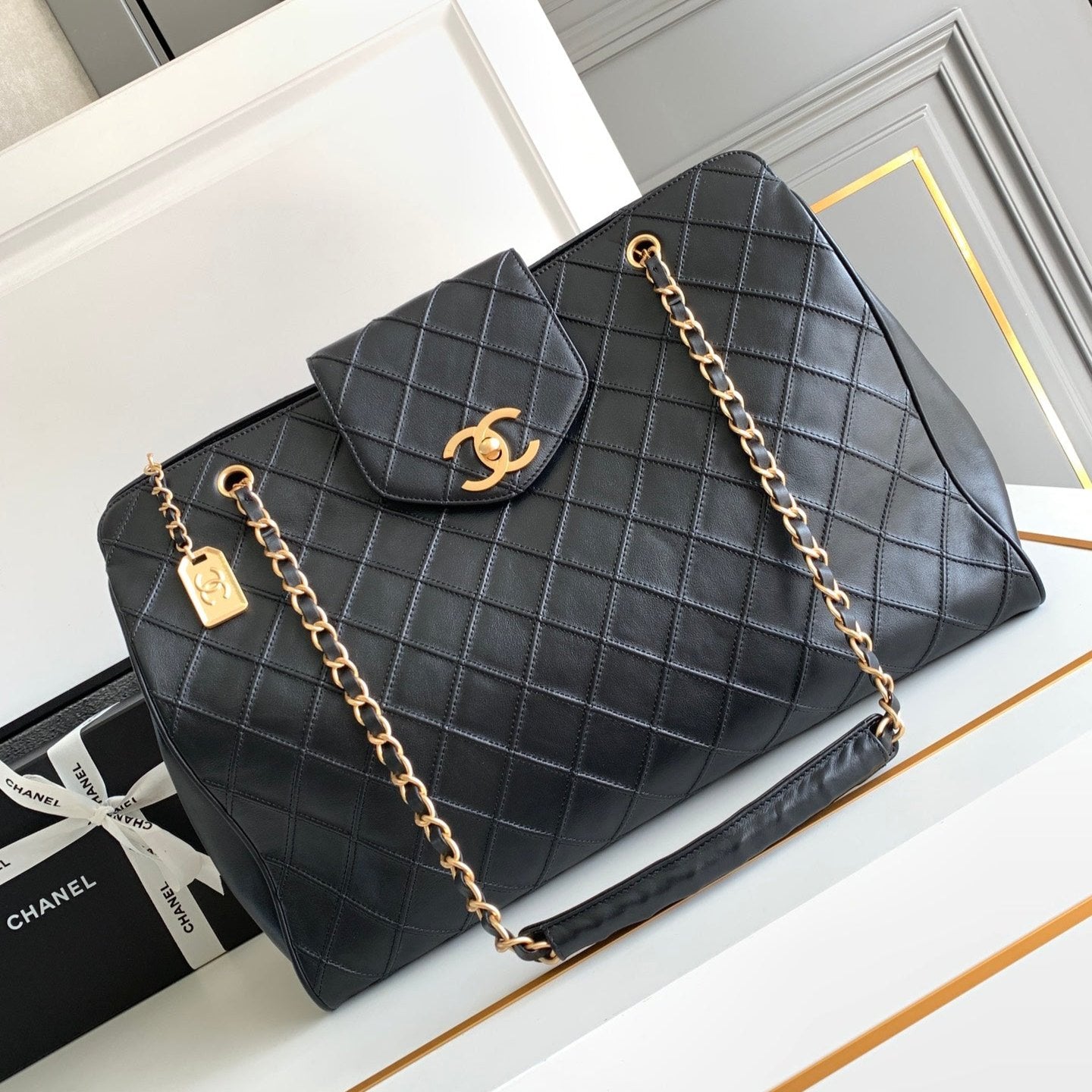 CC LARGE BAG 43 IN BLACK CALFSKIN