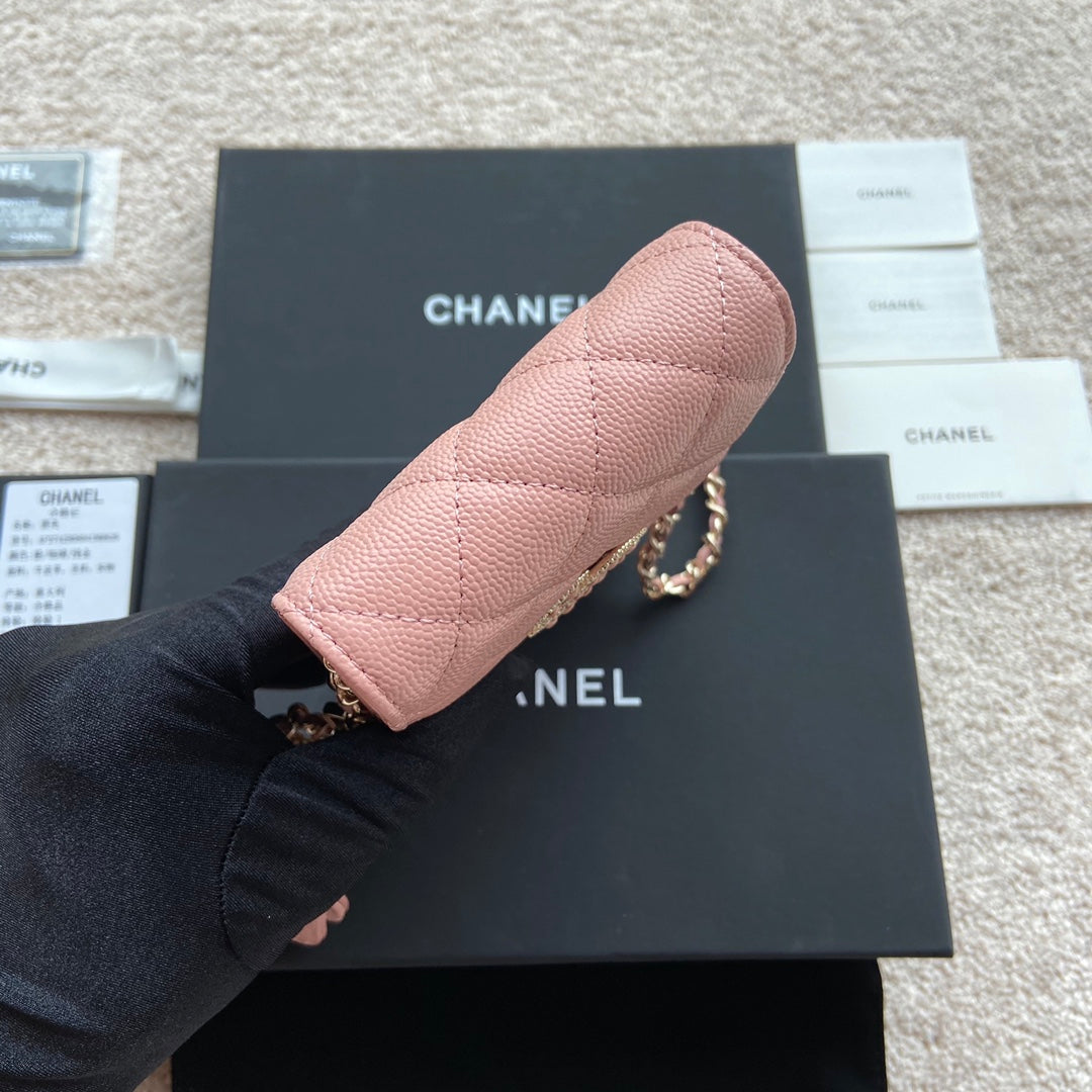 CC Phone Holder Pale & Air Pod Bag Pink Caviar Diamond Hardware 229778
