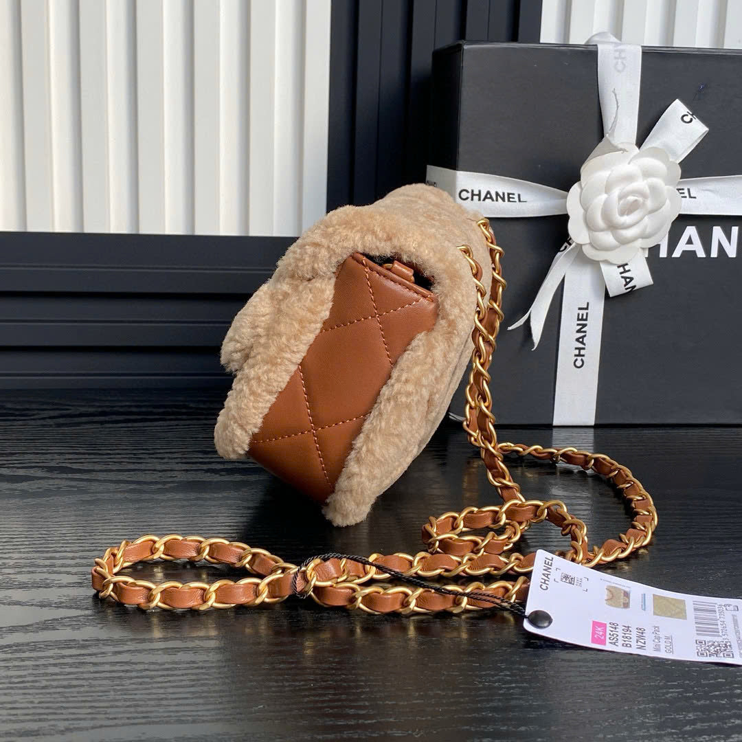 Chanel mini Flap Bag Shearling Lambskin Gold Tone Metal Beige Brown
