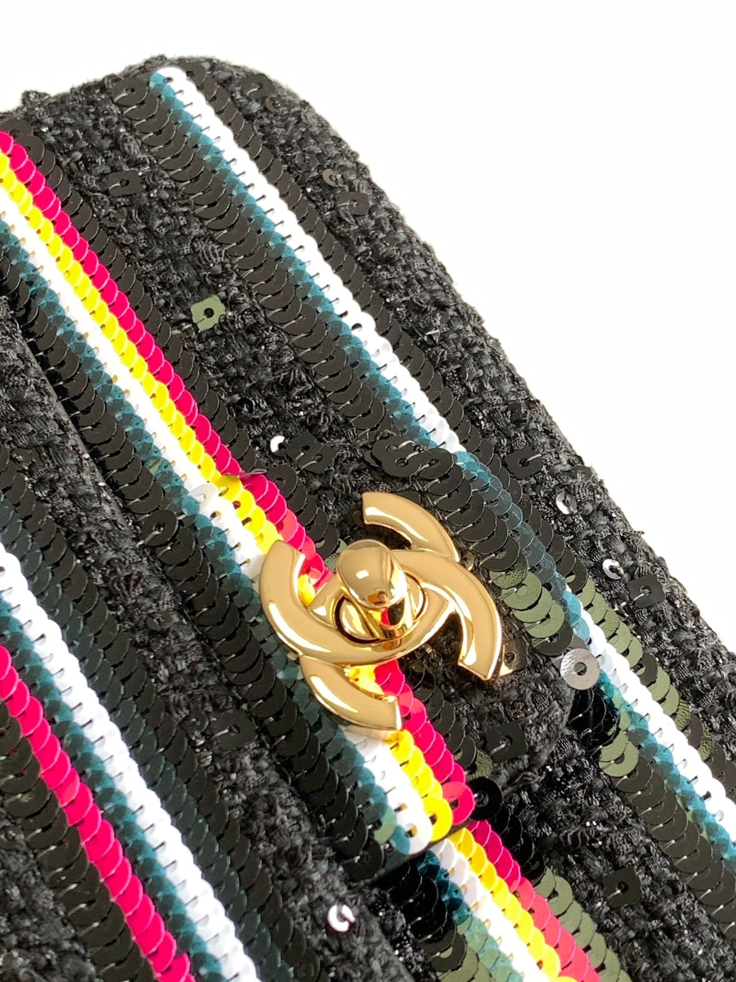 MINI 20 CLASSIC HANDBAG IN BLACK EMBROIDERED TWEED SEQUINS