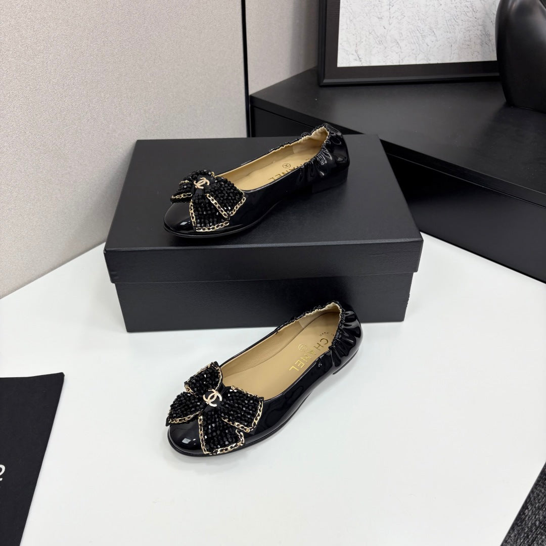 CC 25s Coco Beach Ballet Flats Glossy Black Sheepskin 331786