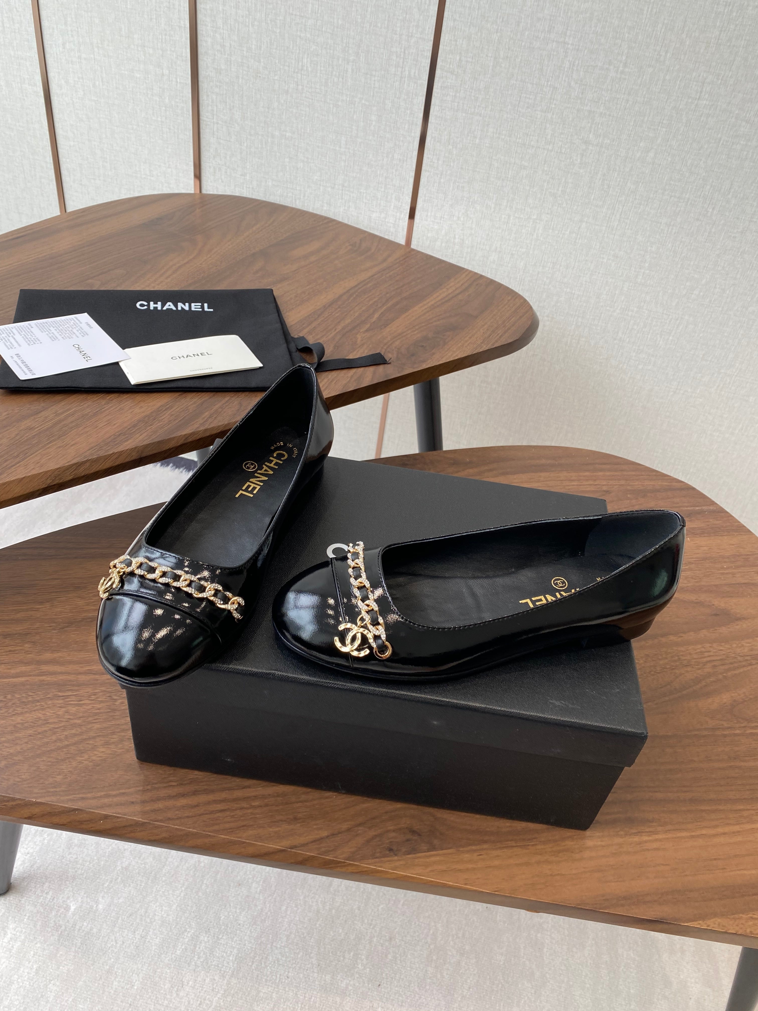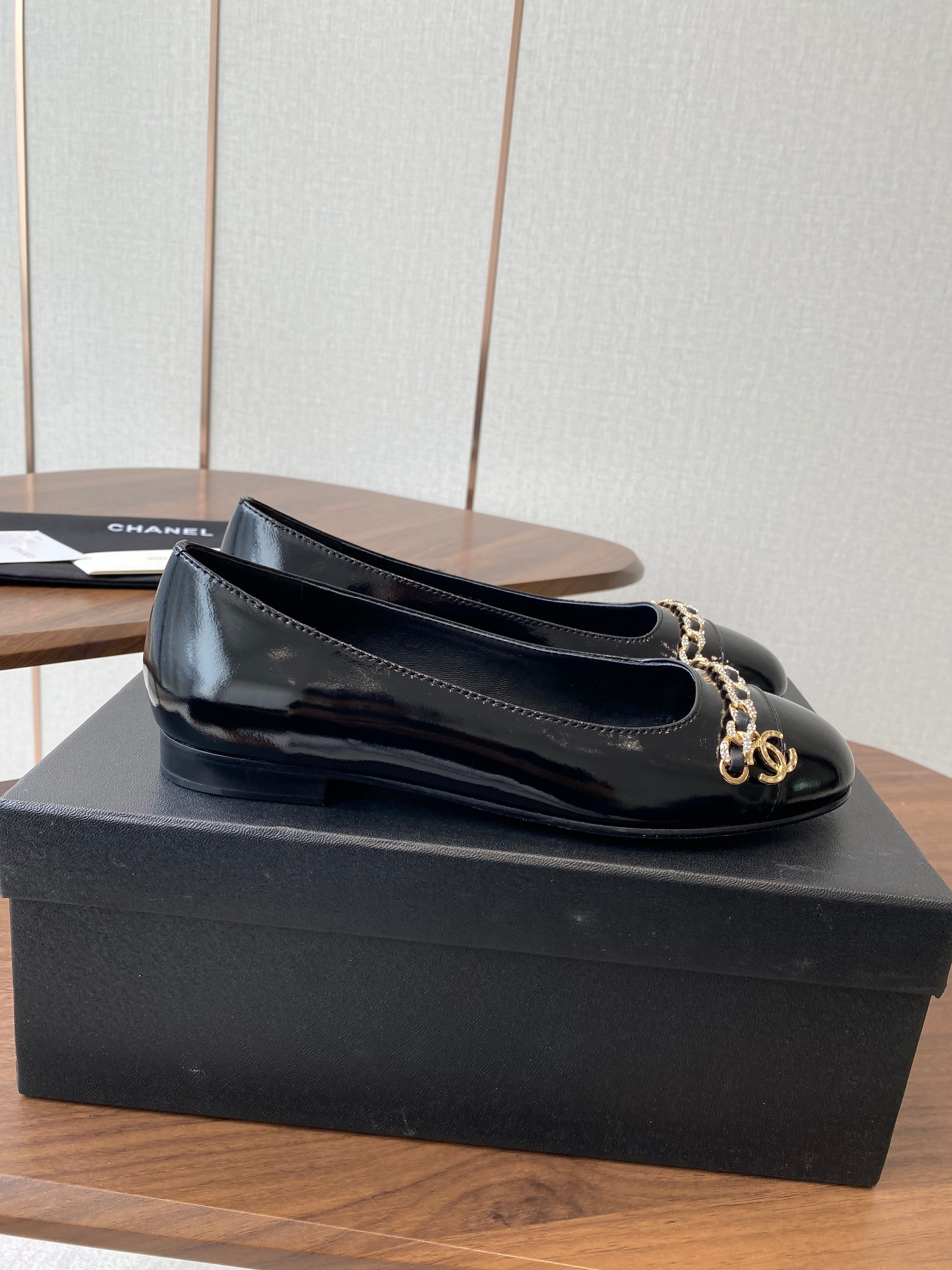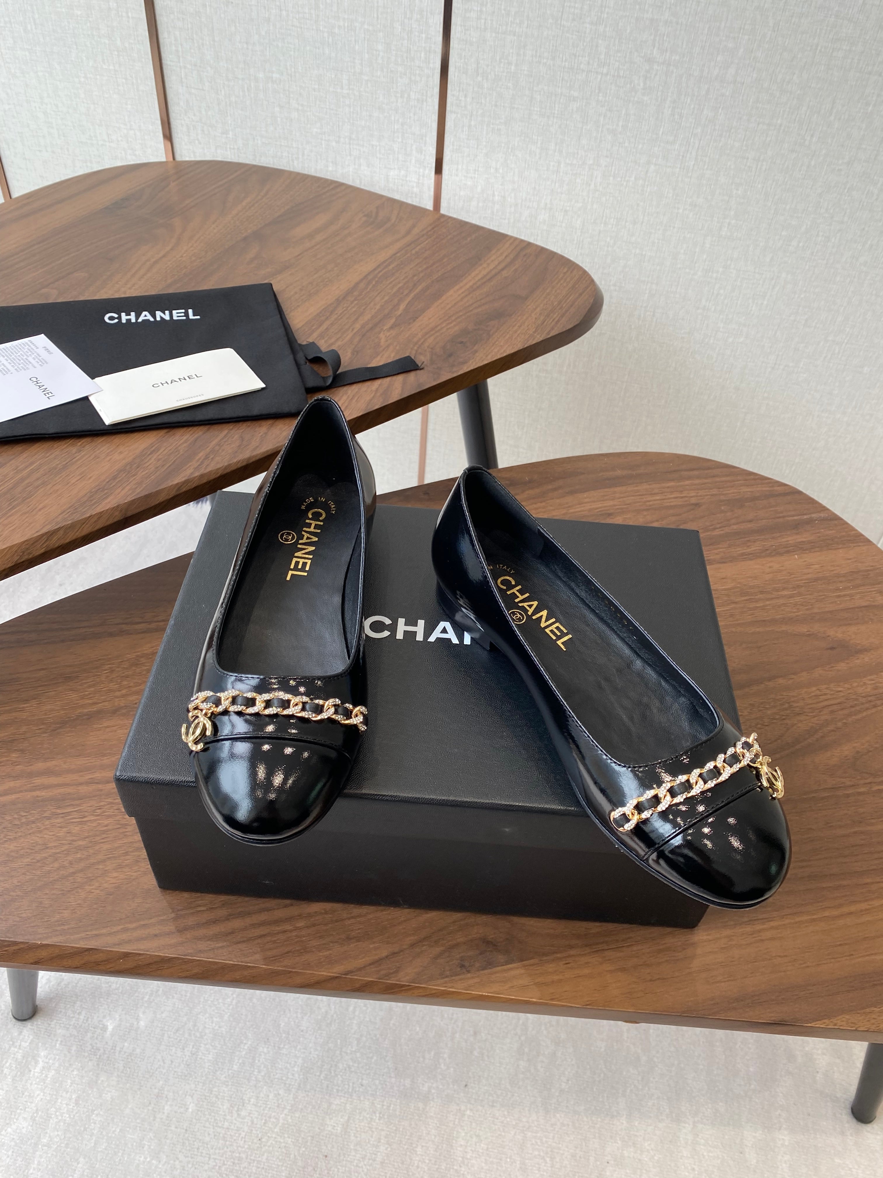 CC Ballerina Chain Flats Black Patent Leather GHW 431483