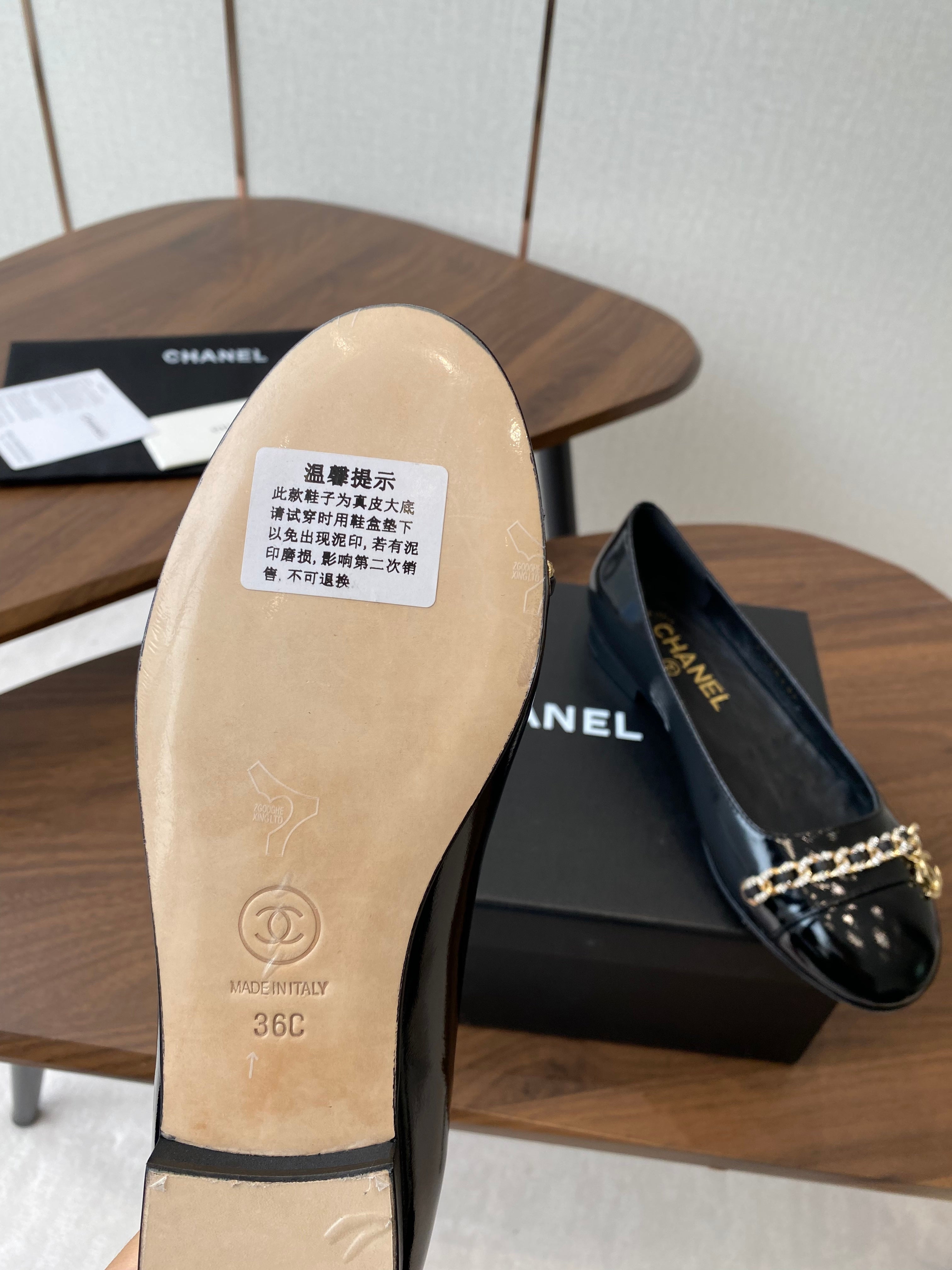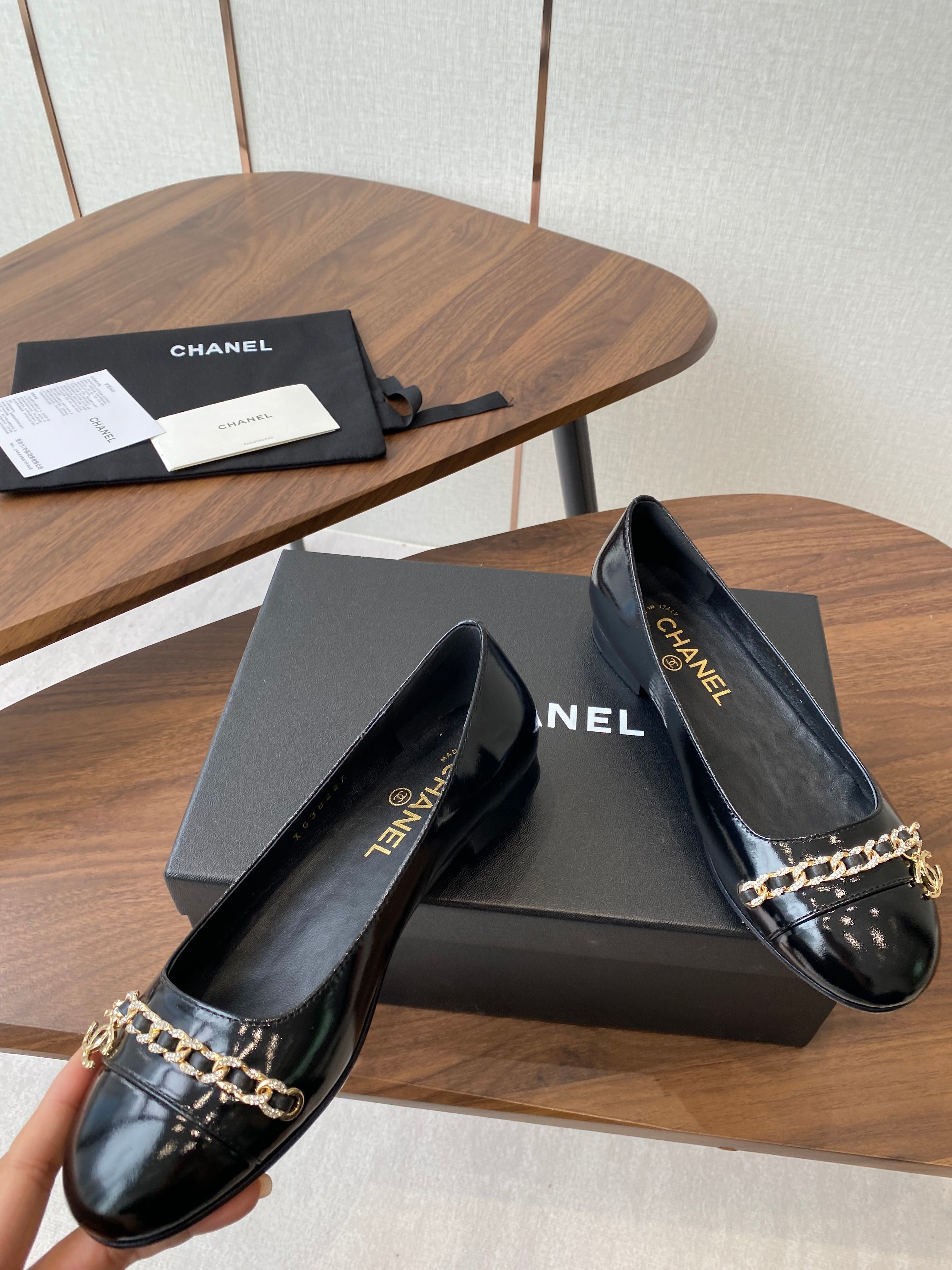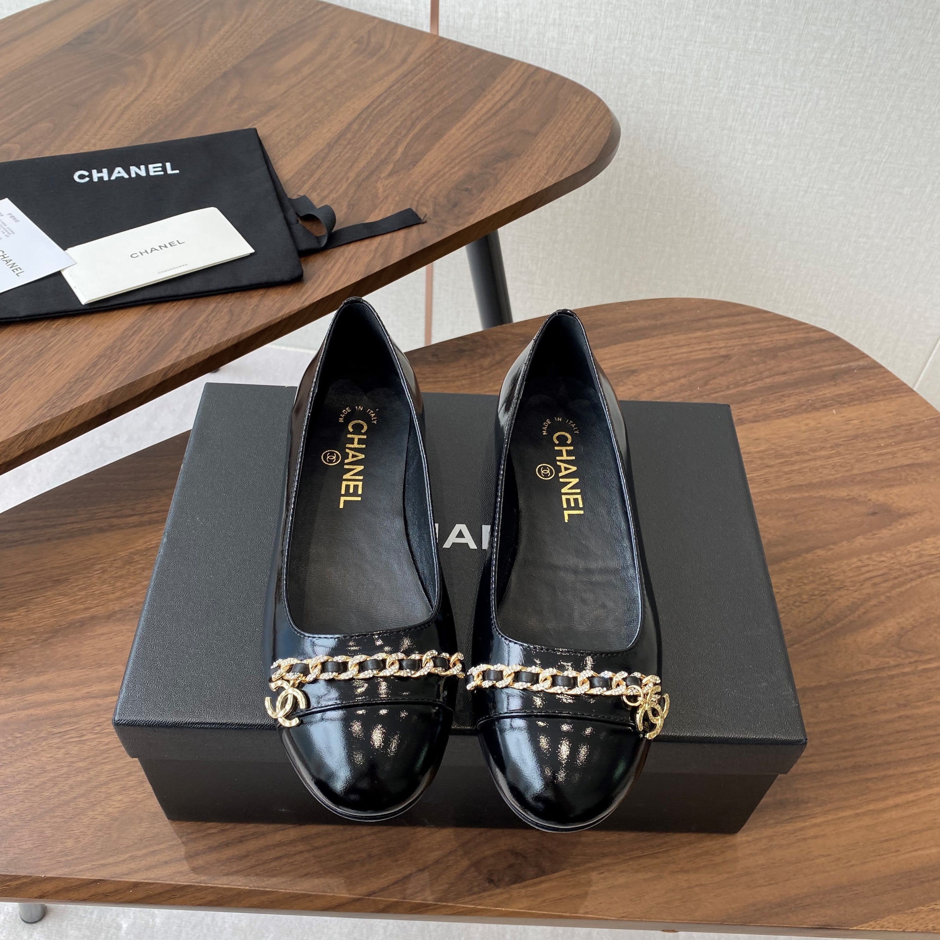 CC Ballerina Chain Flats Black Patent Leather GHW 431483