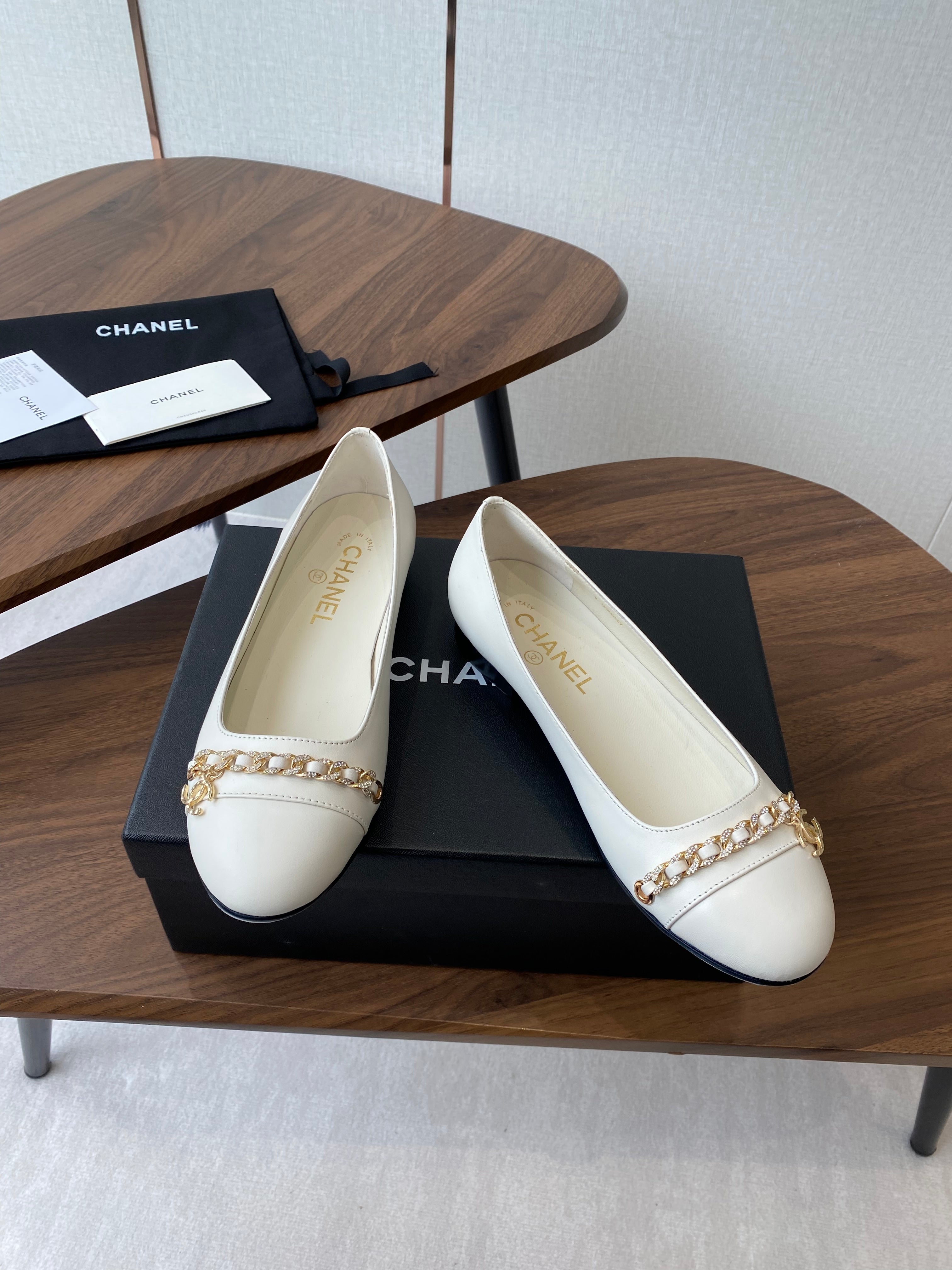 CC Ballerina Chain Flats White Lambskin GHW 431485