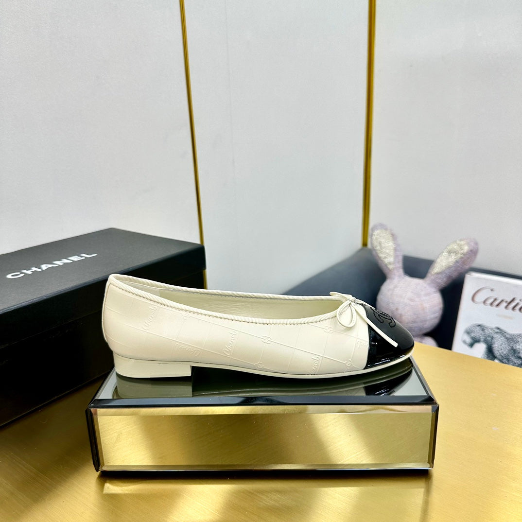 cc ballet flats in cream lambskin and black patent calfskin 137430