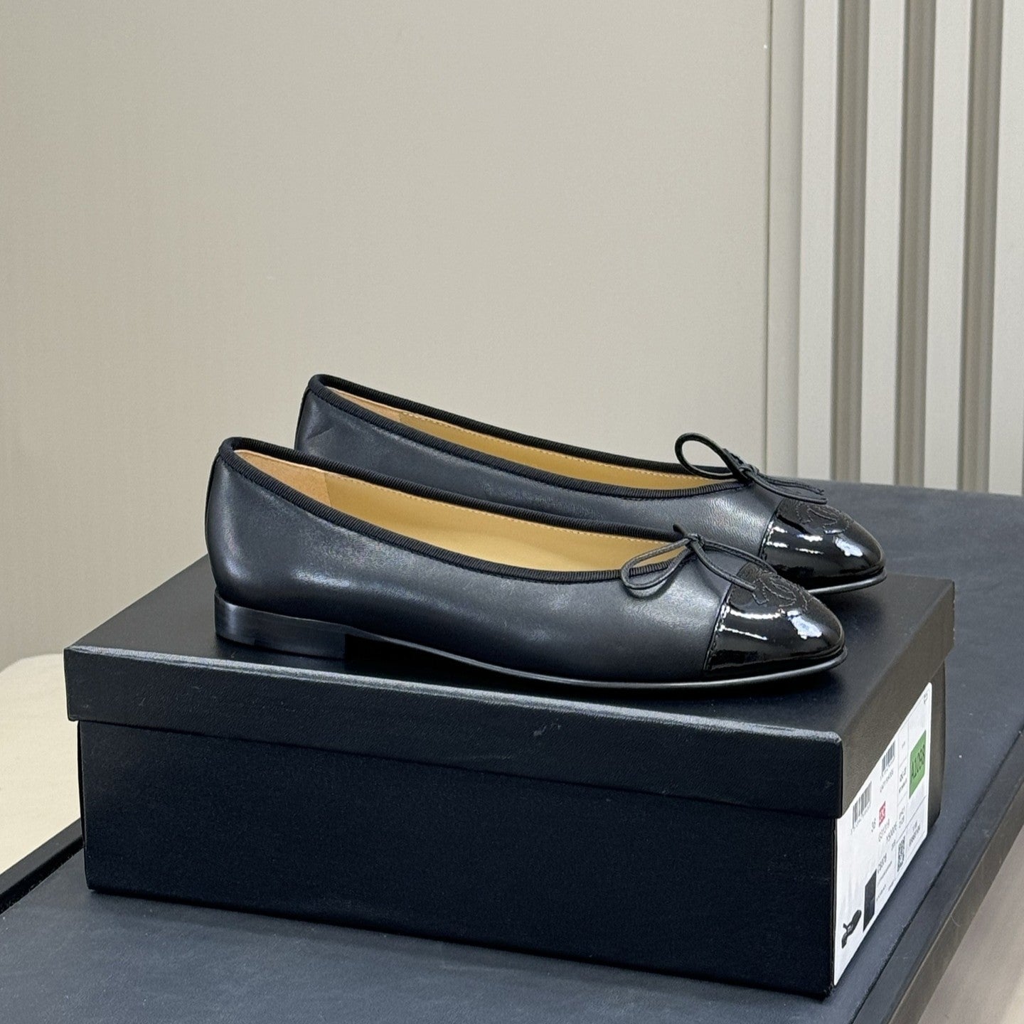 CC Classic Ballet Flats Black Beige Lambskin 282274
