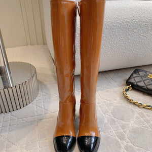 CC 25 Heeled Long Boot Caramel Brown mix Black Patent Leather 516682
