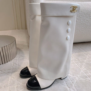 CC 25 Heeled Long Boot Light Gold mix Black Patent Leather 516681