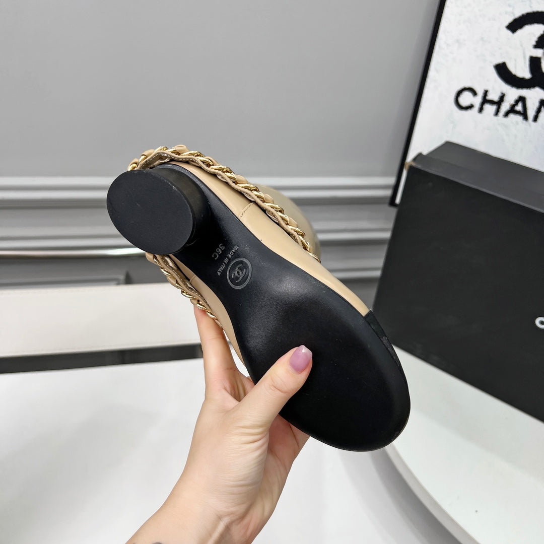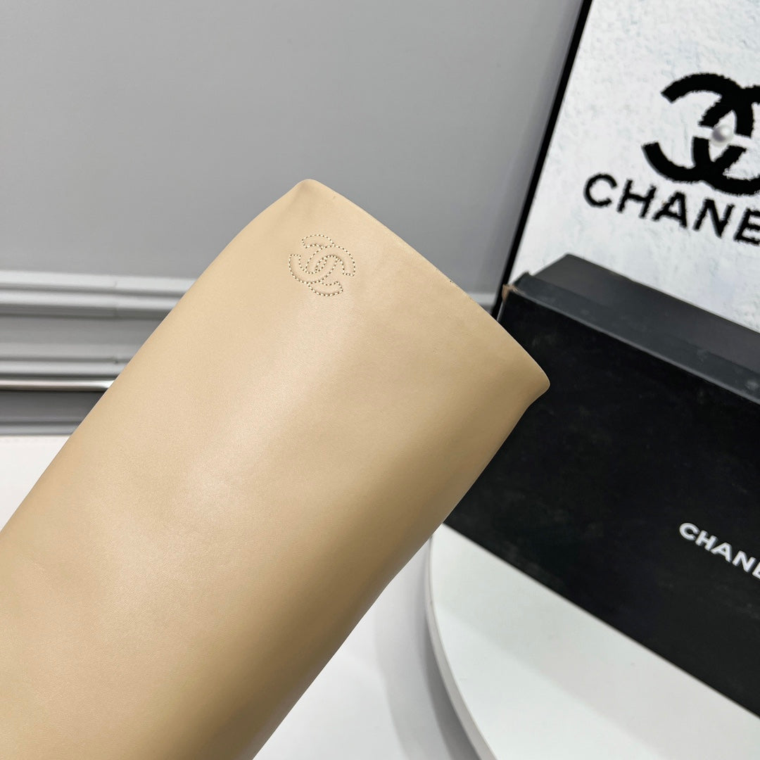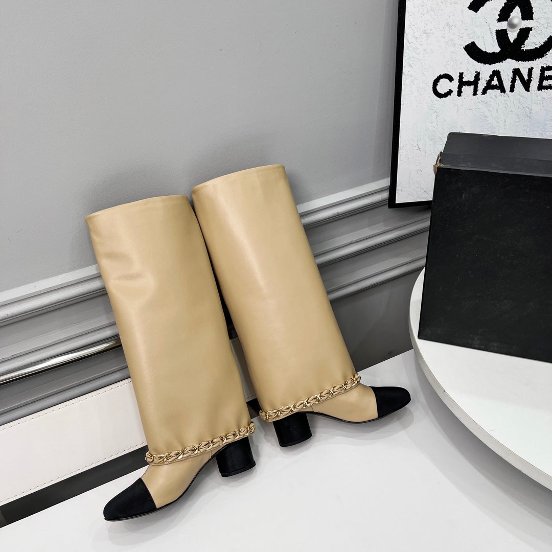 CC 25 High Boots With Chain 55mm Beige Cowhide Black Grosgrain 374025
