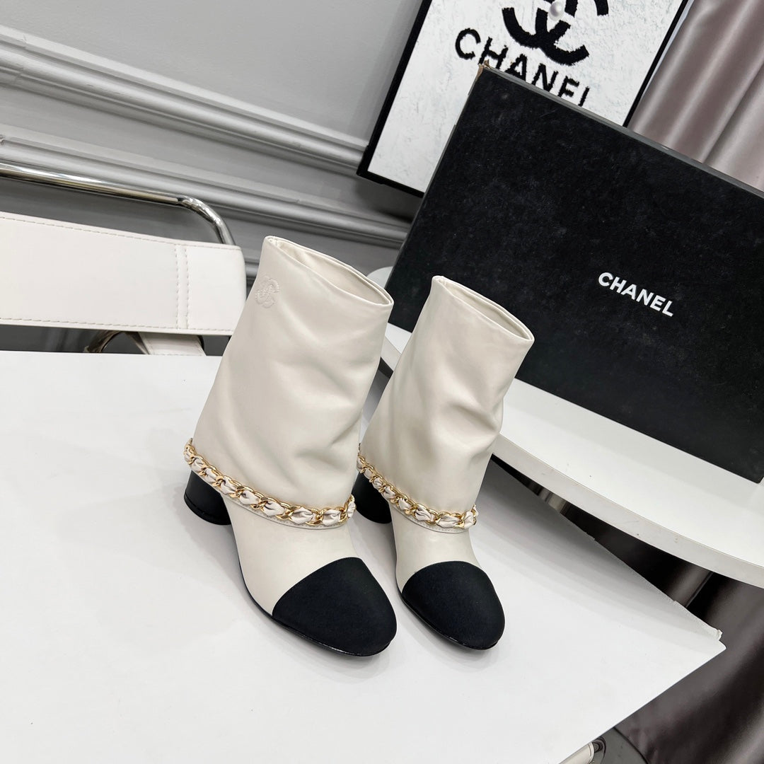 CC 25 Short Boots With Chain 55mm White Cowhide Black Grosgrain 374028
