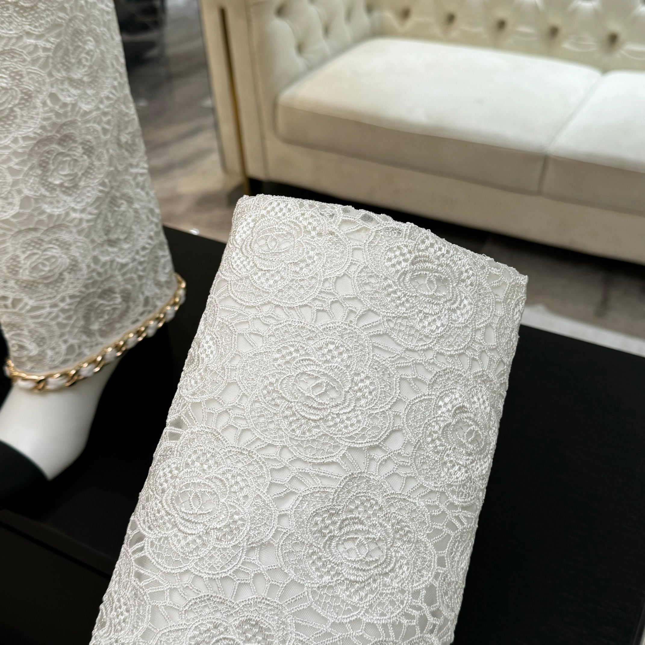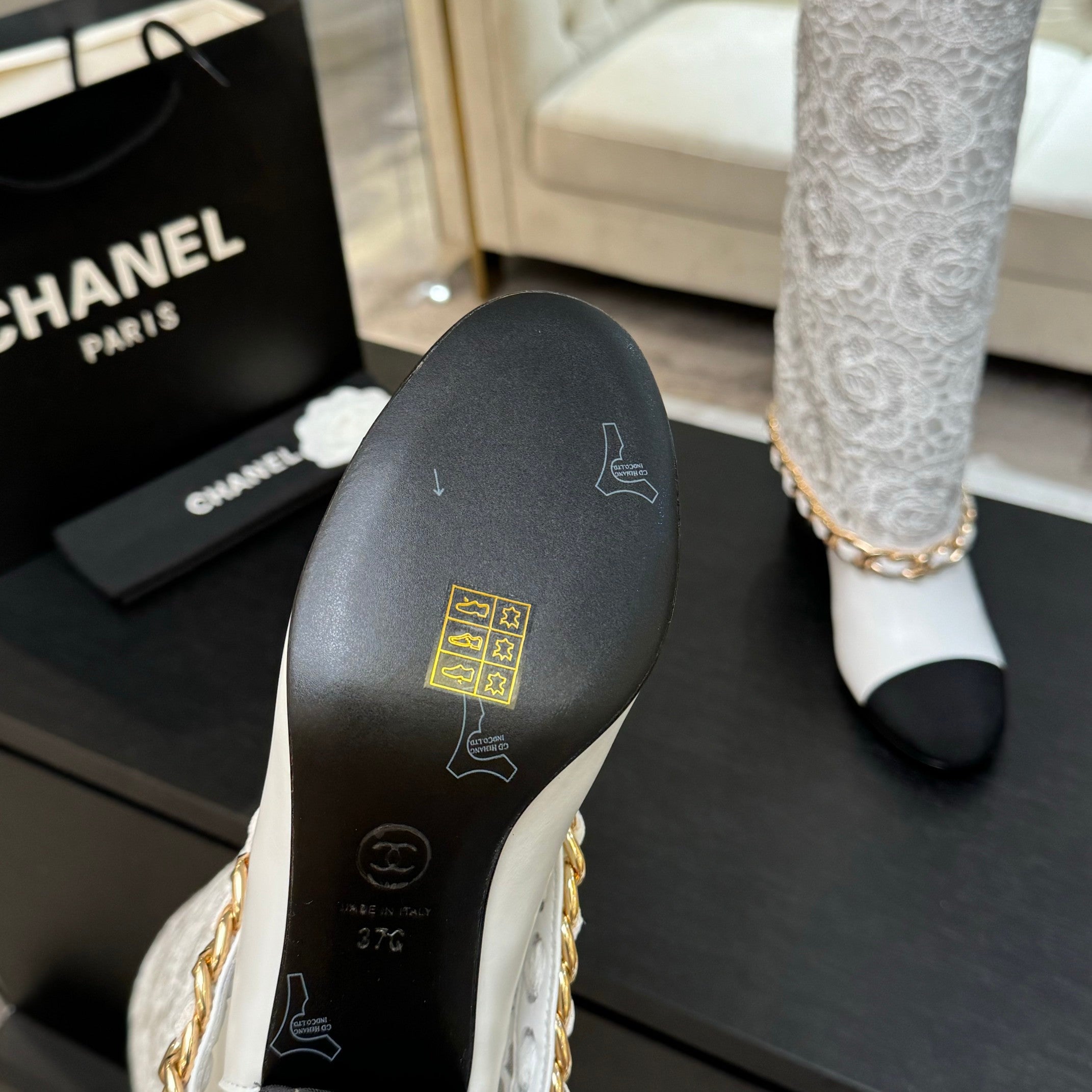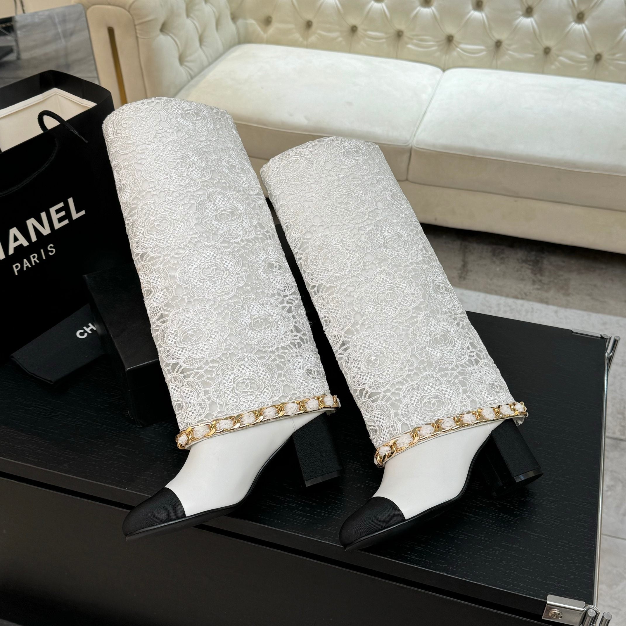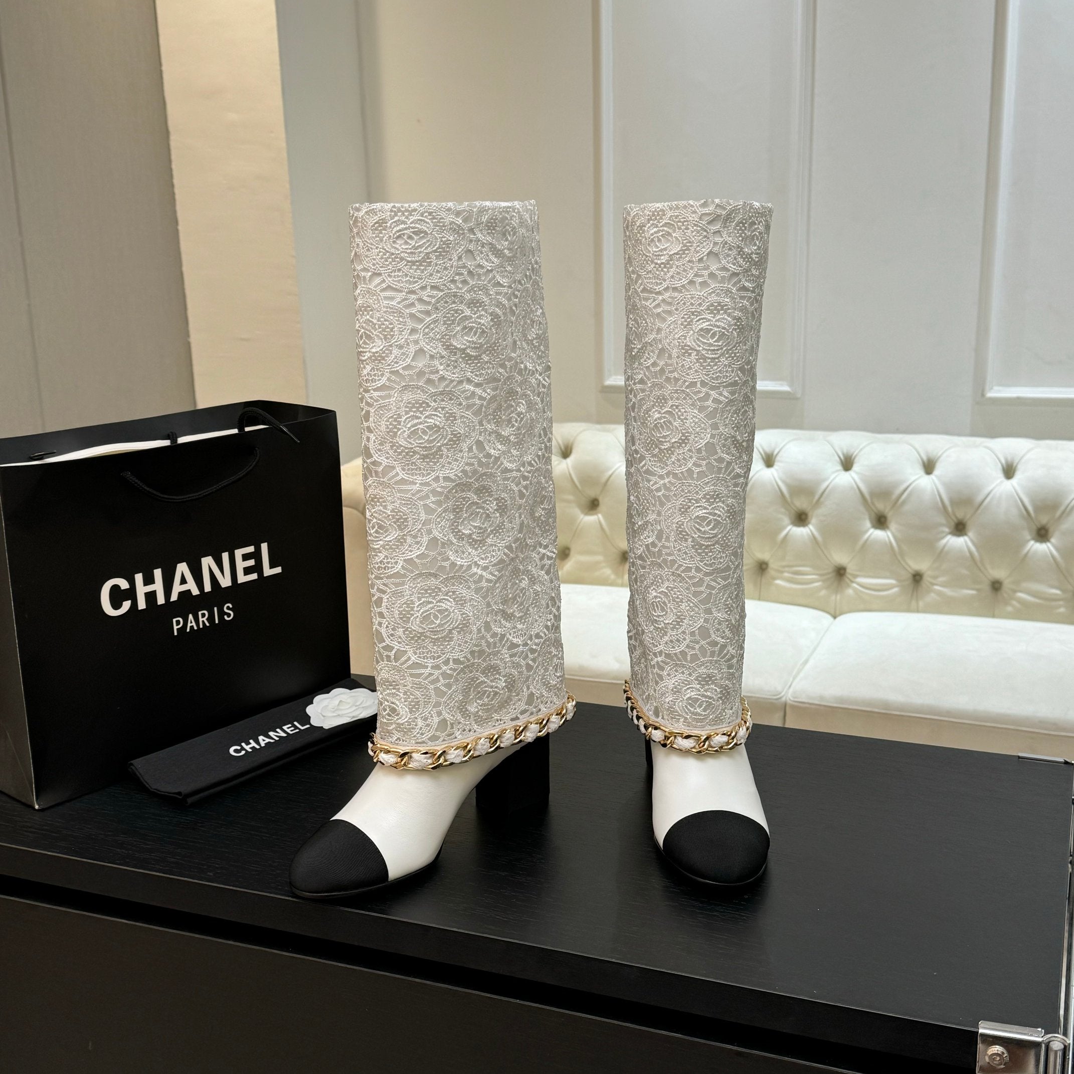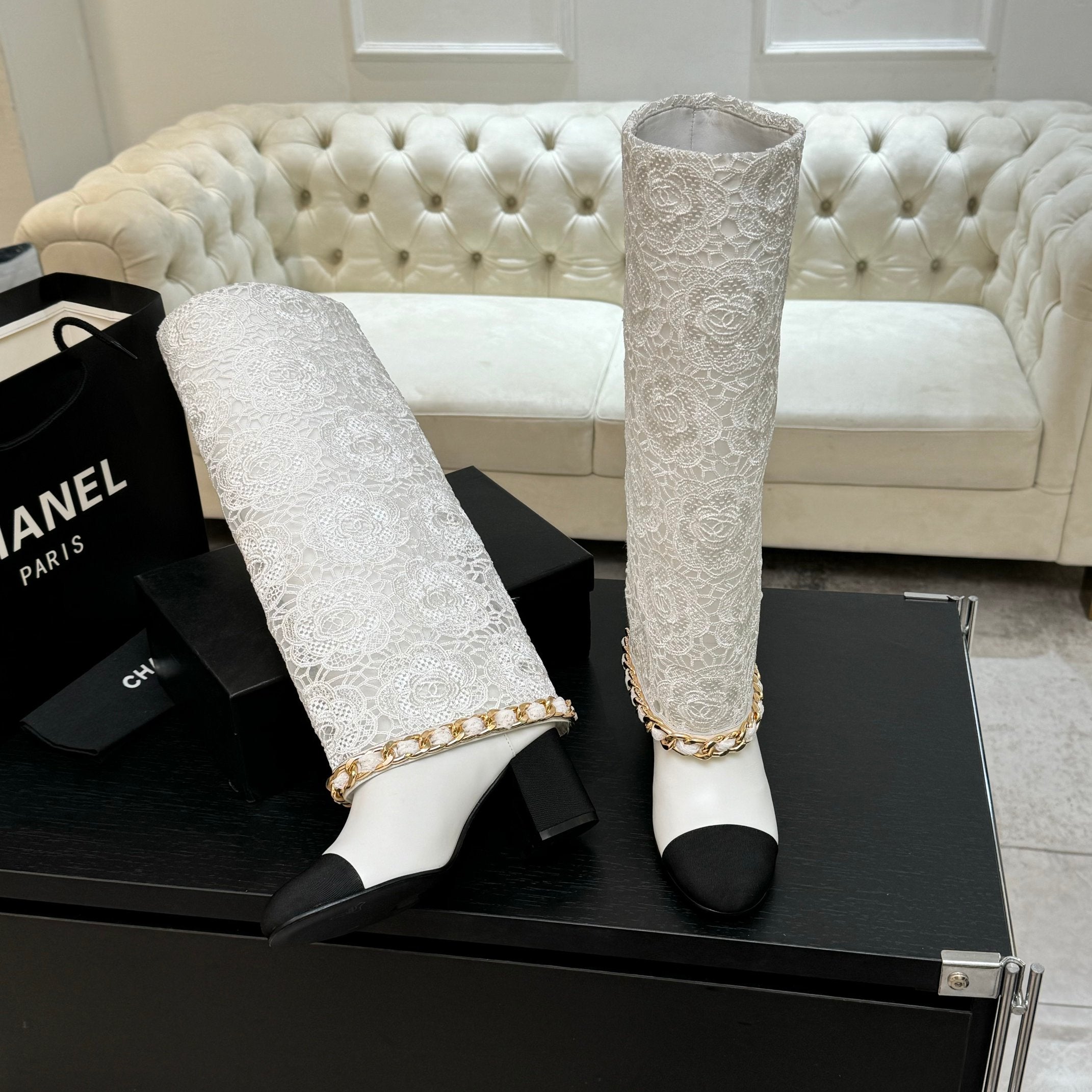 CC 25B High Boots White Lace With Chain Black Grosgrain 373805