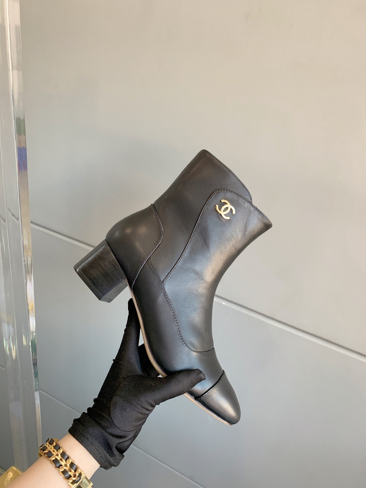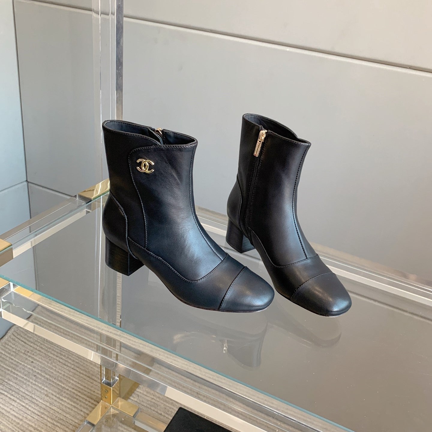 CC Ankle Boots Block Heel 60mm Black Cowhide 464567