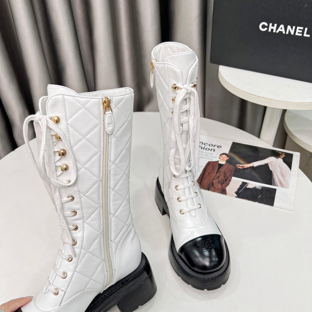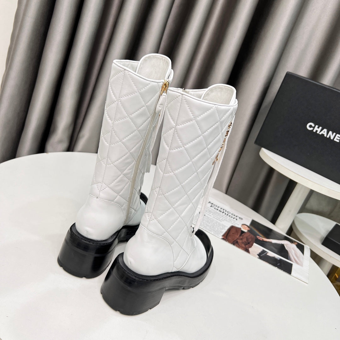 CC High Boots 60mm White Quilted Lambskin And Cowhide