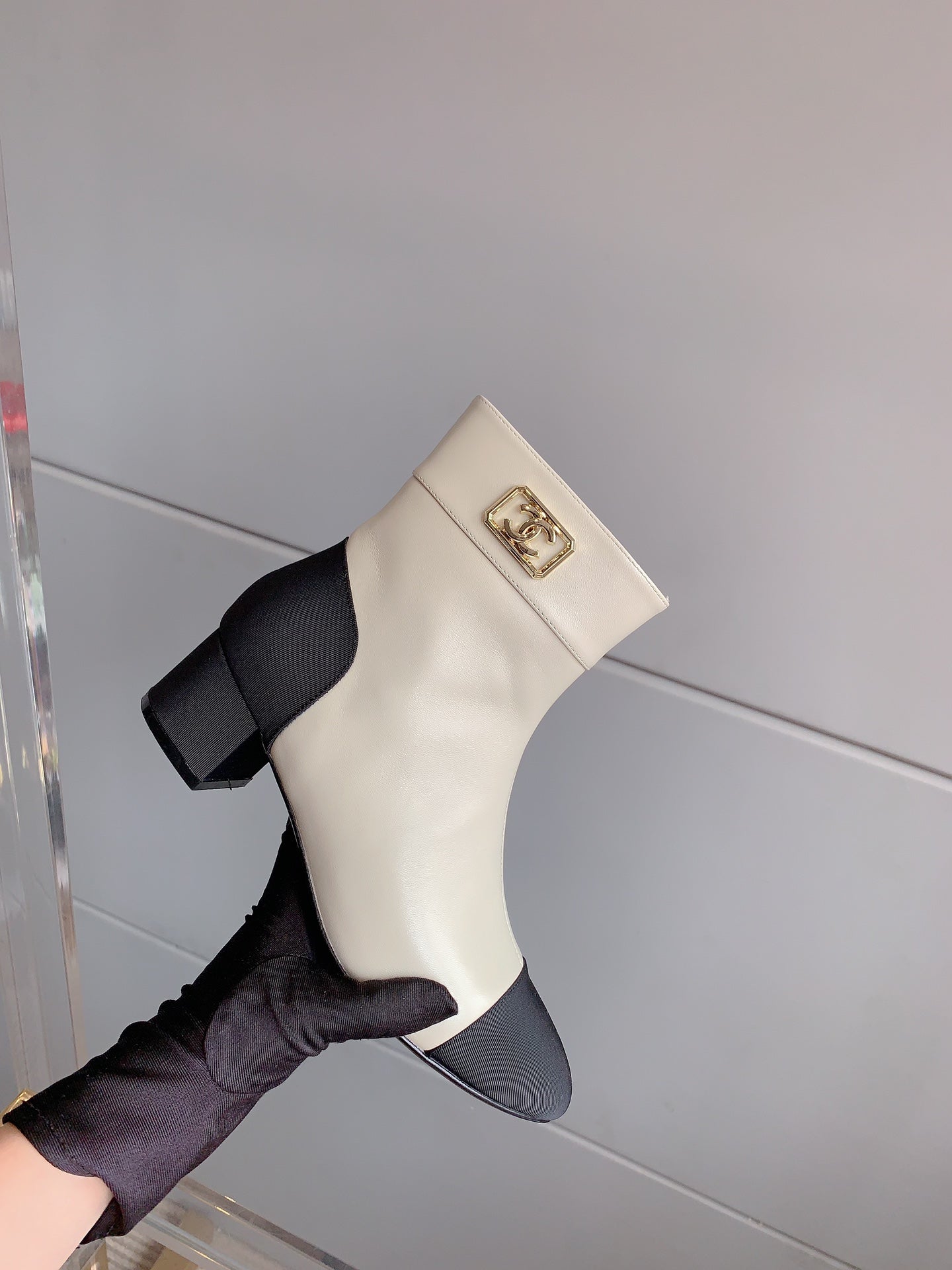 CC Low-Cut Logo Ankle Boots 50mm Black White Sheepskin Frabic 464559