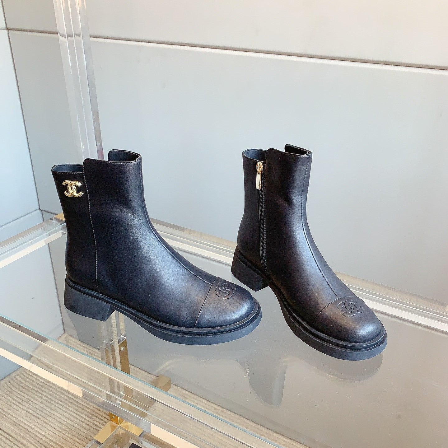 CC Zipper Ankle Boots 35mm Black Sheeepskin 464548