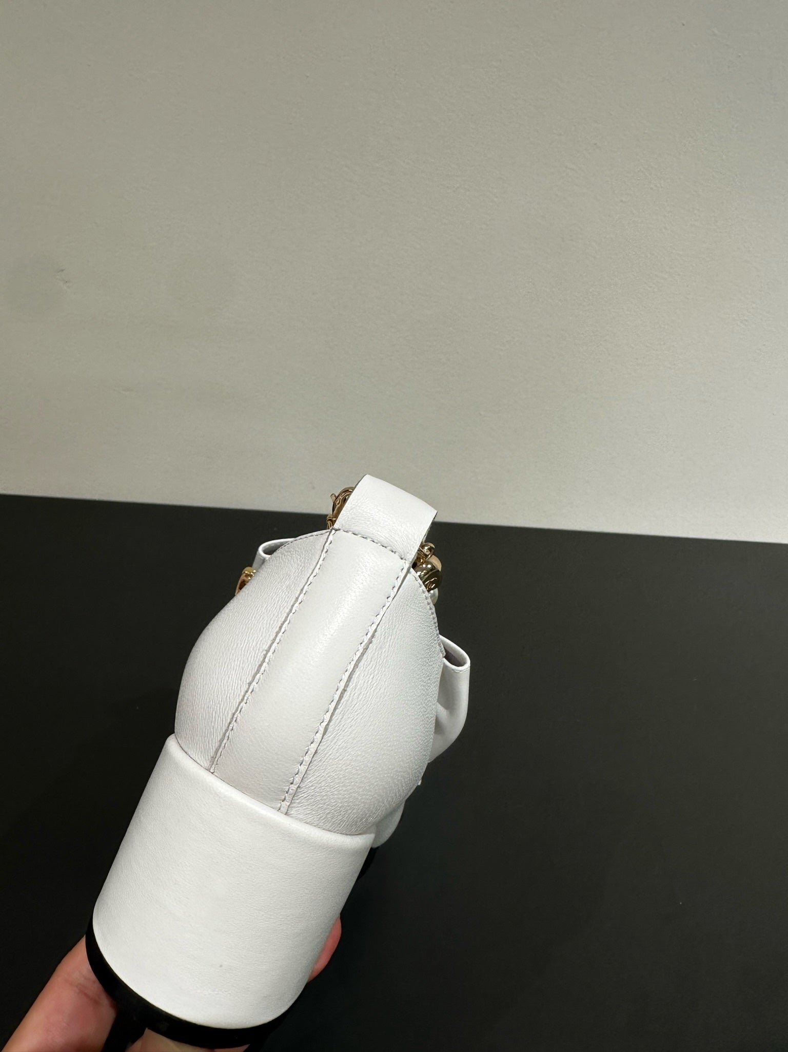 CCC Pointed Toe High Heels White Bow Tie Cowhide
