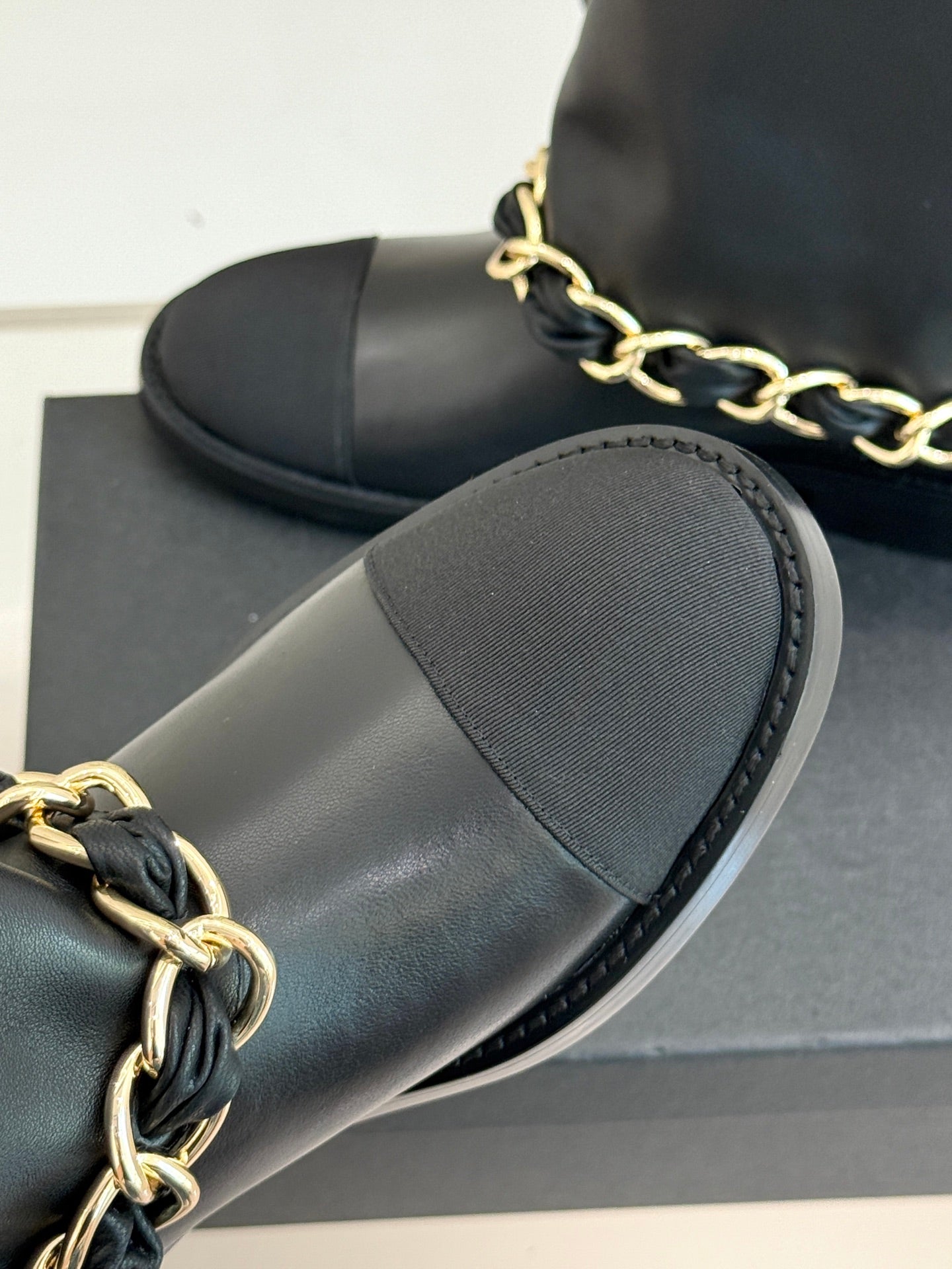 Chanel 25 Large Chain Flat-solved Boot Black Lambskin 465422