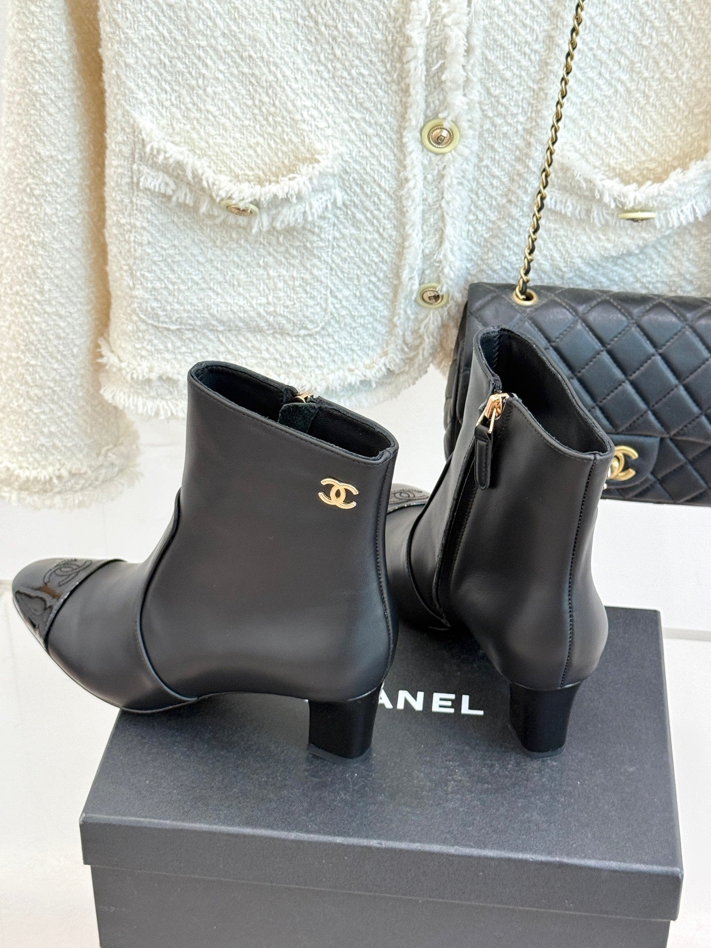 Chanel Double C Colorblock Heel Boot Black Sheepskin 465416