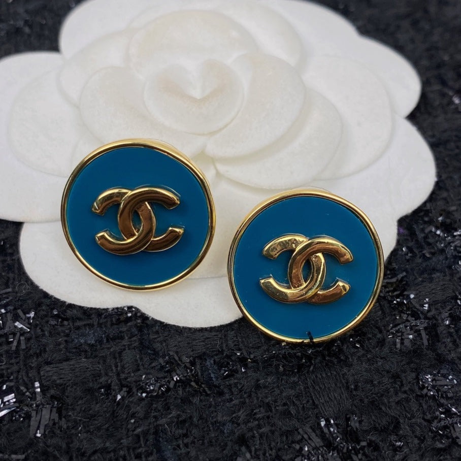 CC CIRCLE BLUE STUD MEDIUM EARRINGS