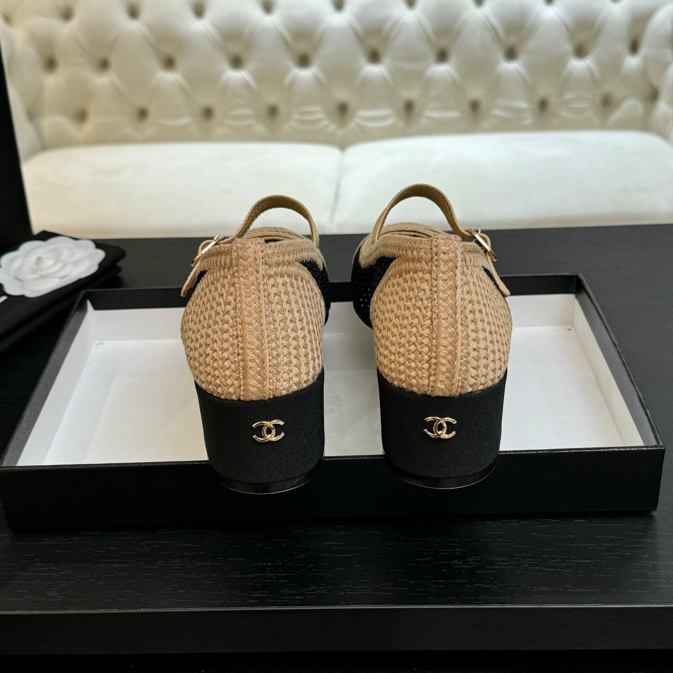 CC 25P Mary Jane 50mm Beige Black Raffia 373791