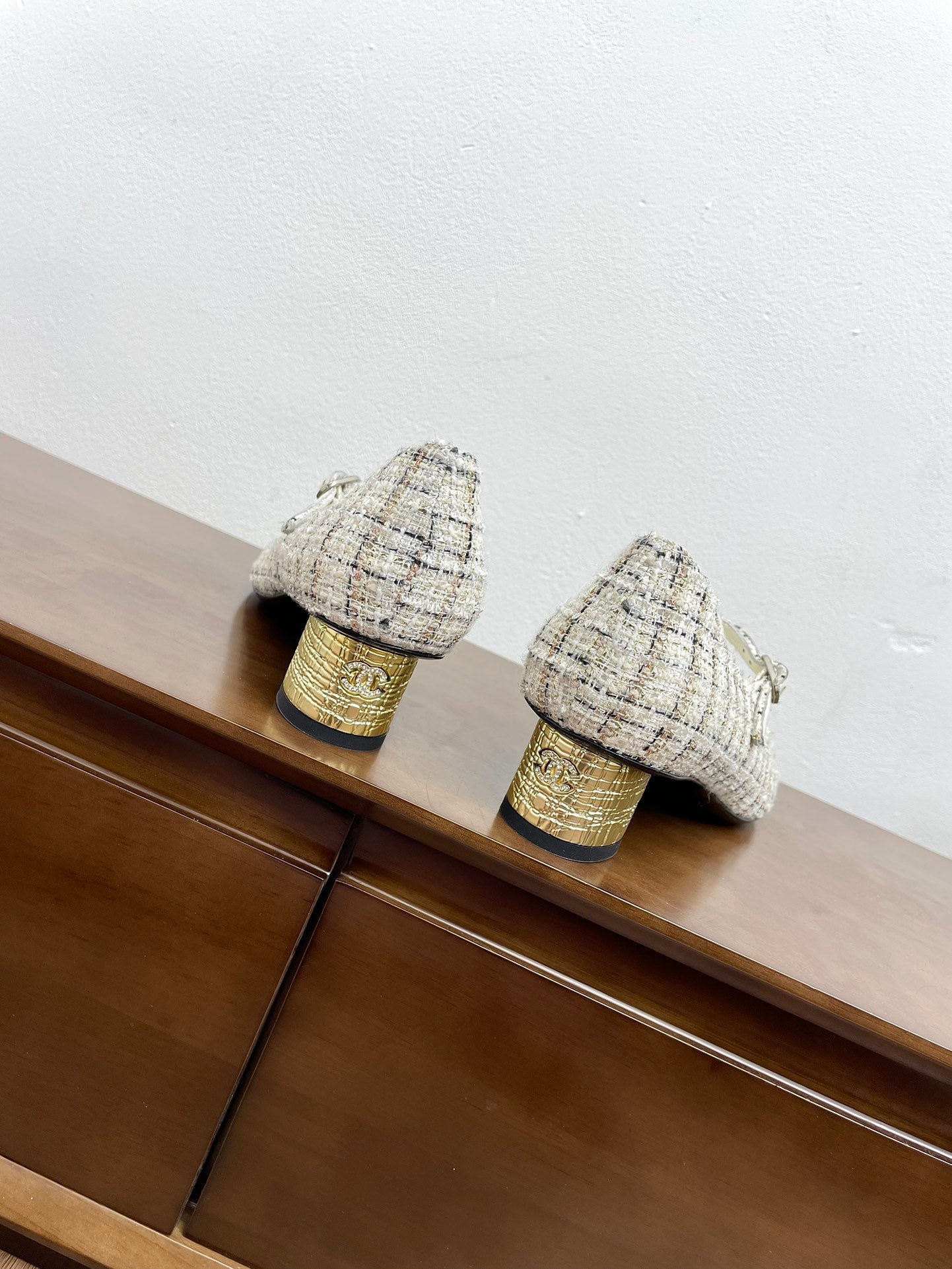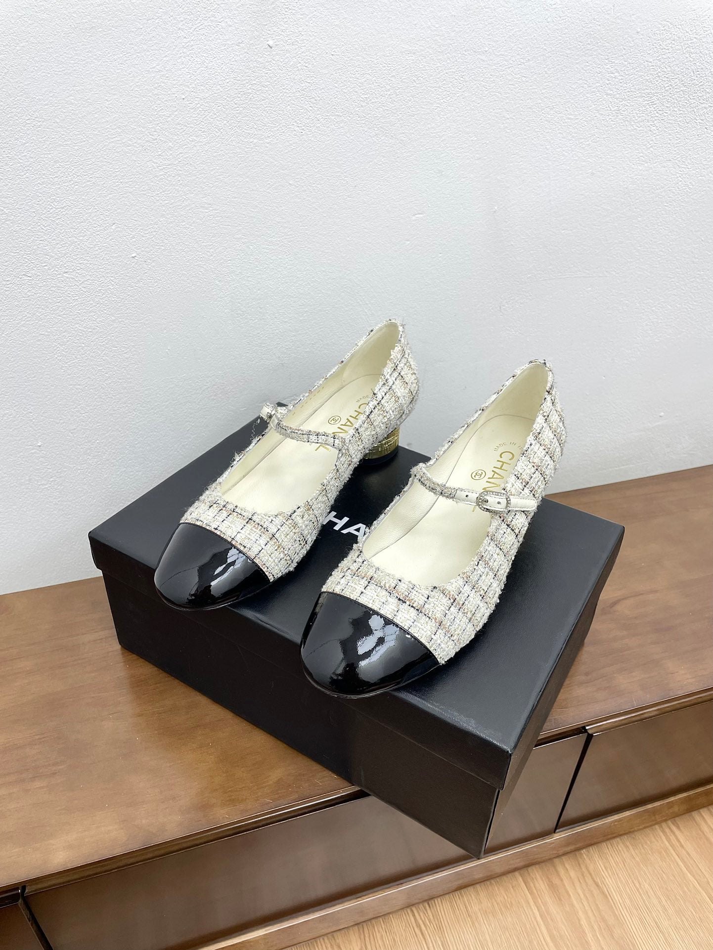 CC Mary Jane White Tweed Farbic And Cowhide