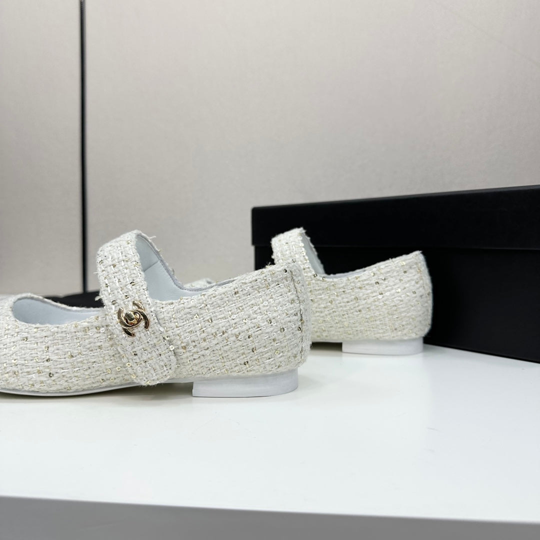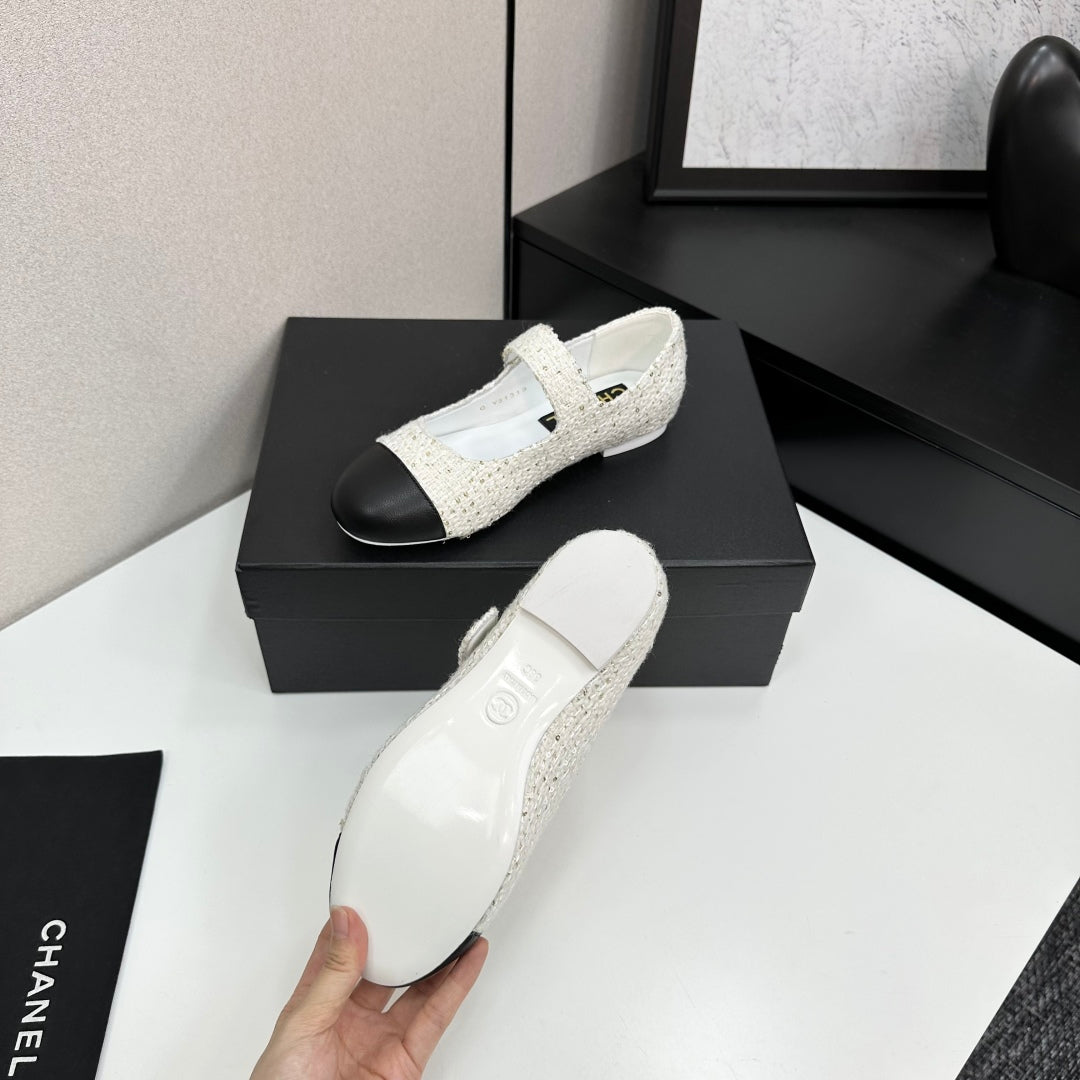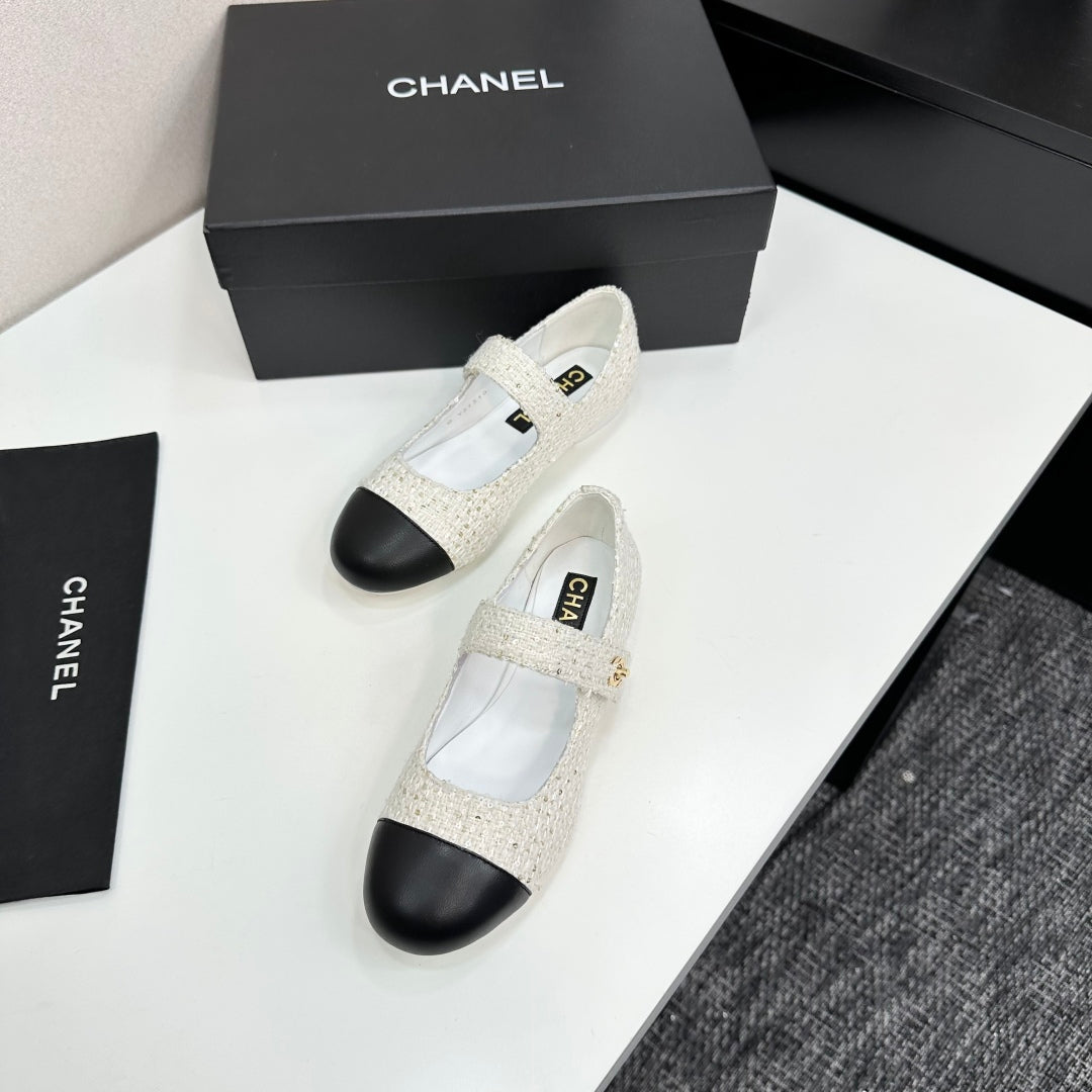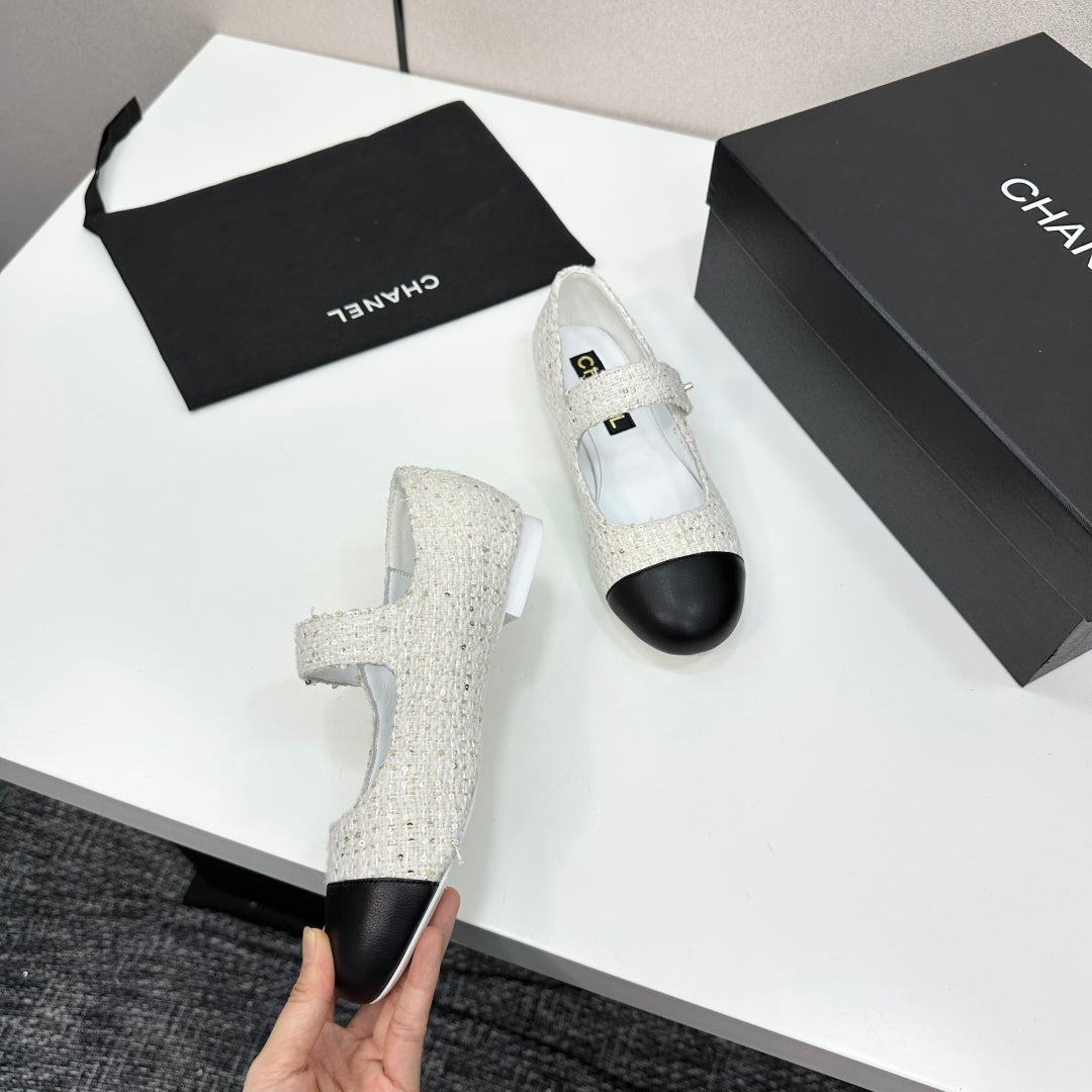 CC25 Mary Janes White Tweed And Black Cowhide 352506