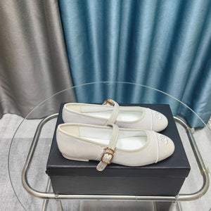 CC 25 Mary Jane Flat White Leather with Fabric 239409