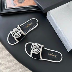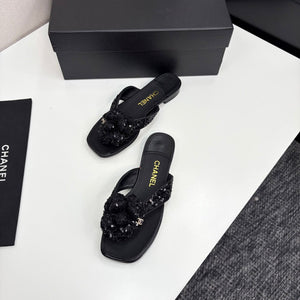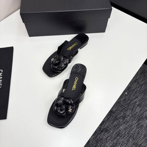 CC 25 Flower Thong Slippers Black Cowhide 233414