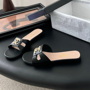 Chanel 25A Early Autumn Slippers Black Wool 393078