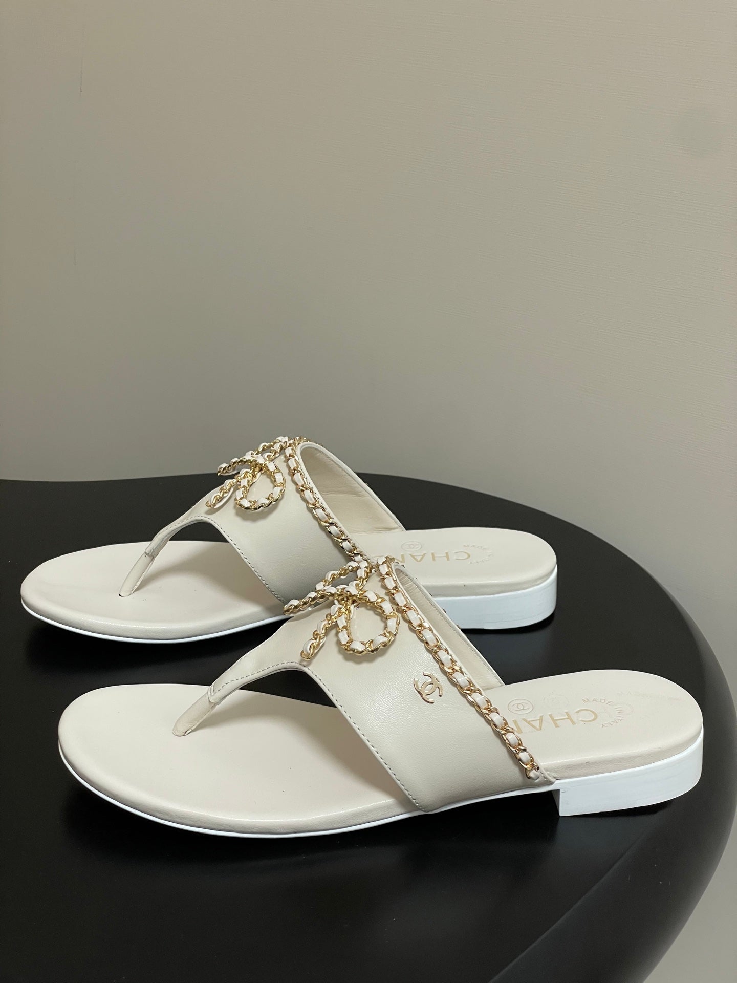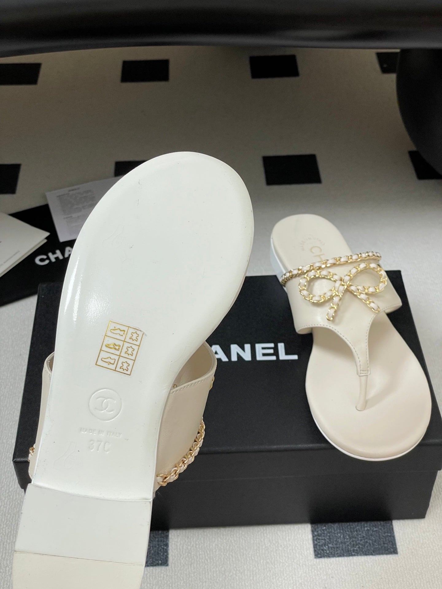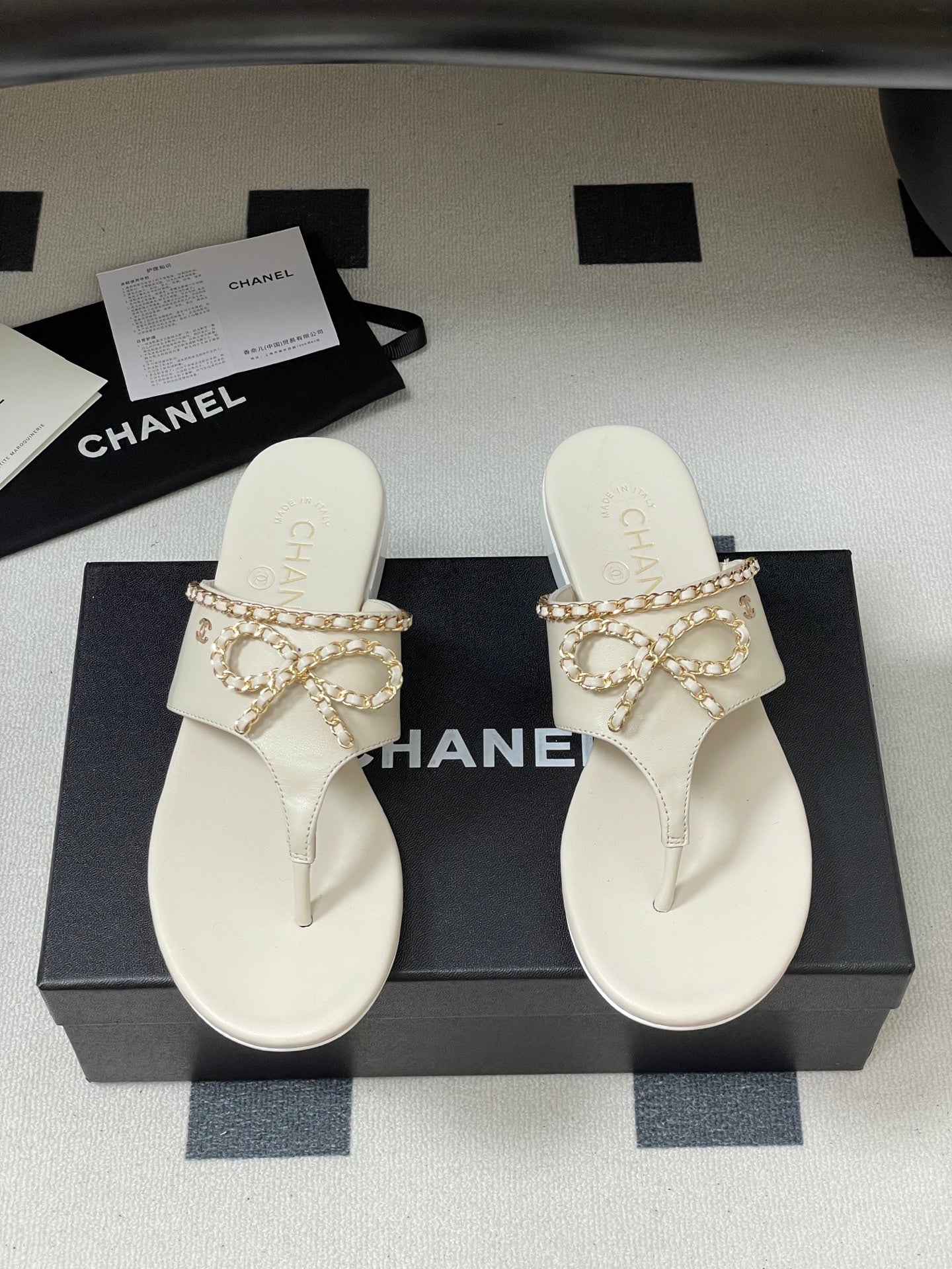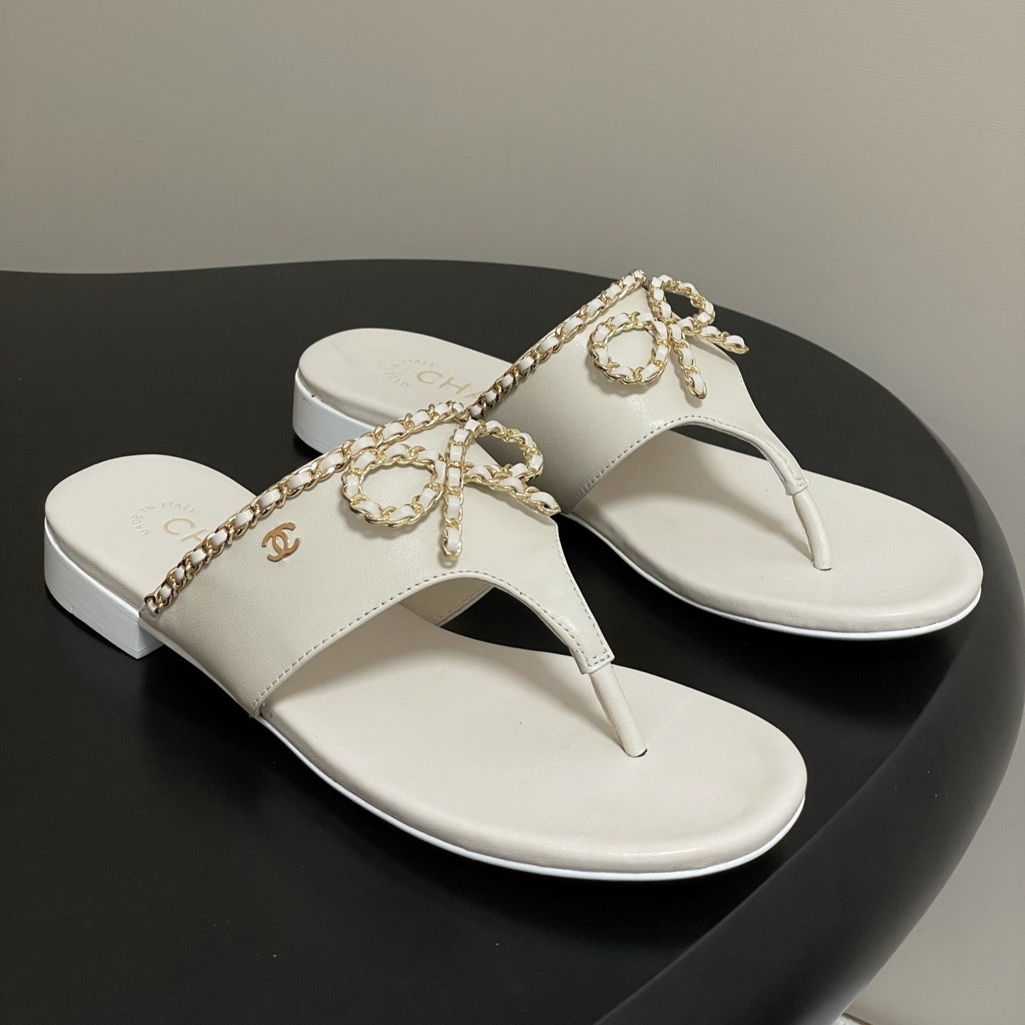 CC 25B Chain Bow Flip-flops Ivory Sheepskin 393986