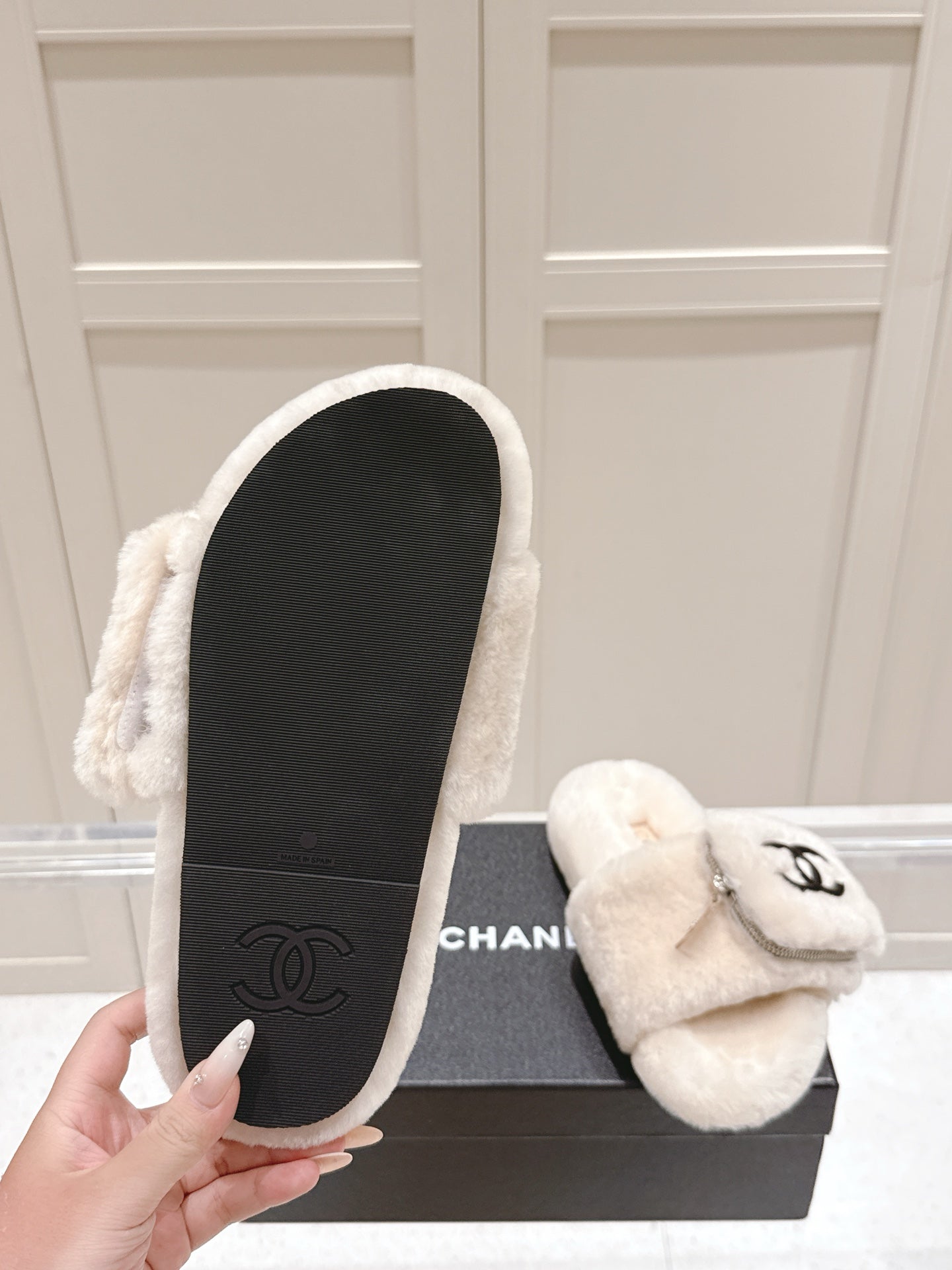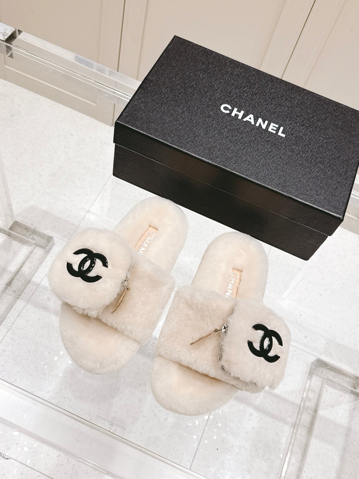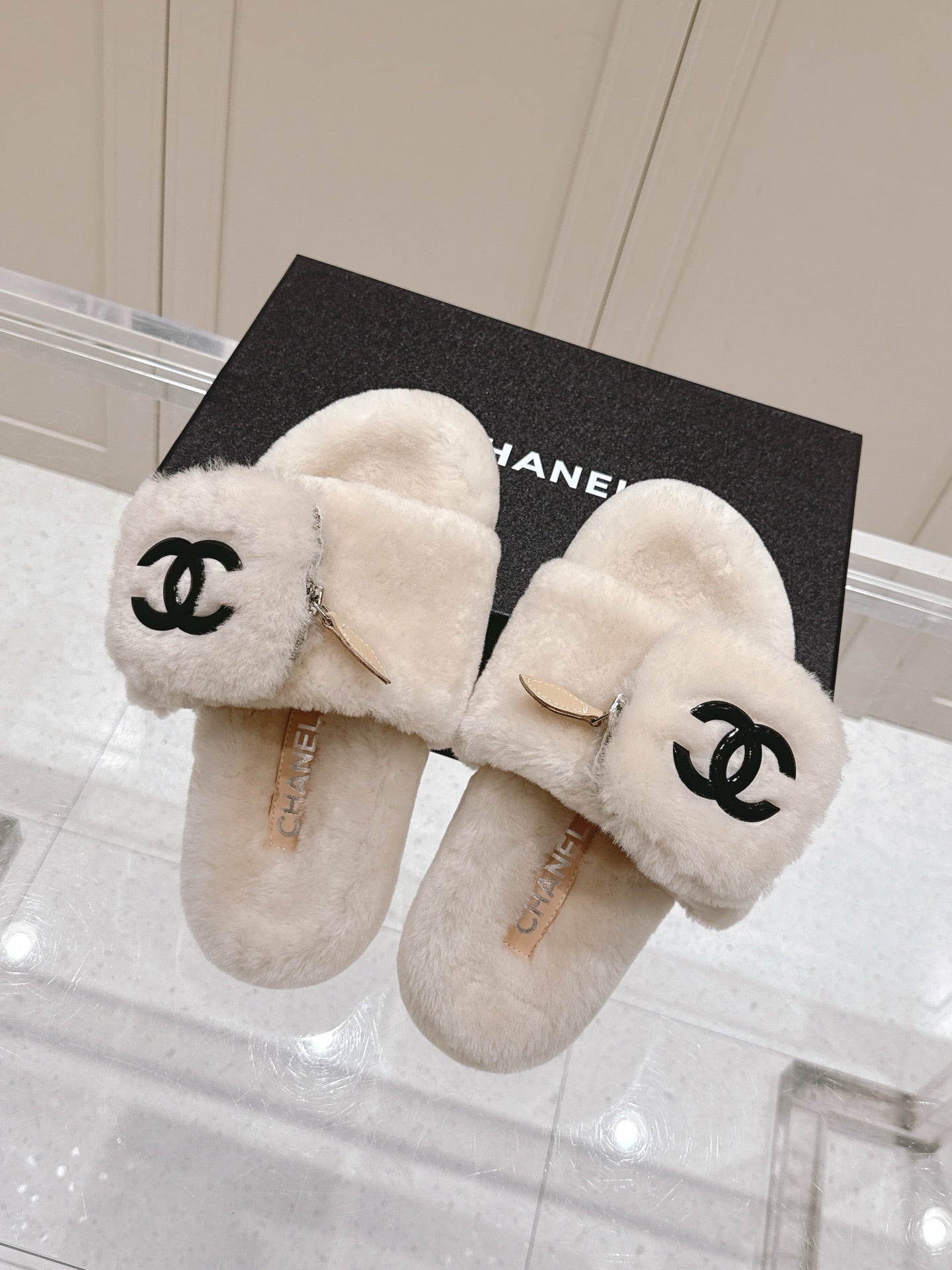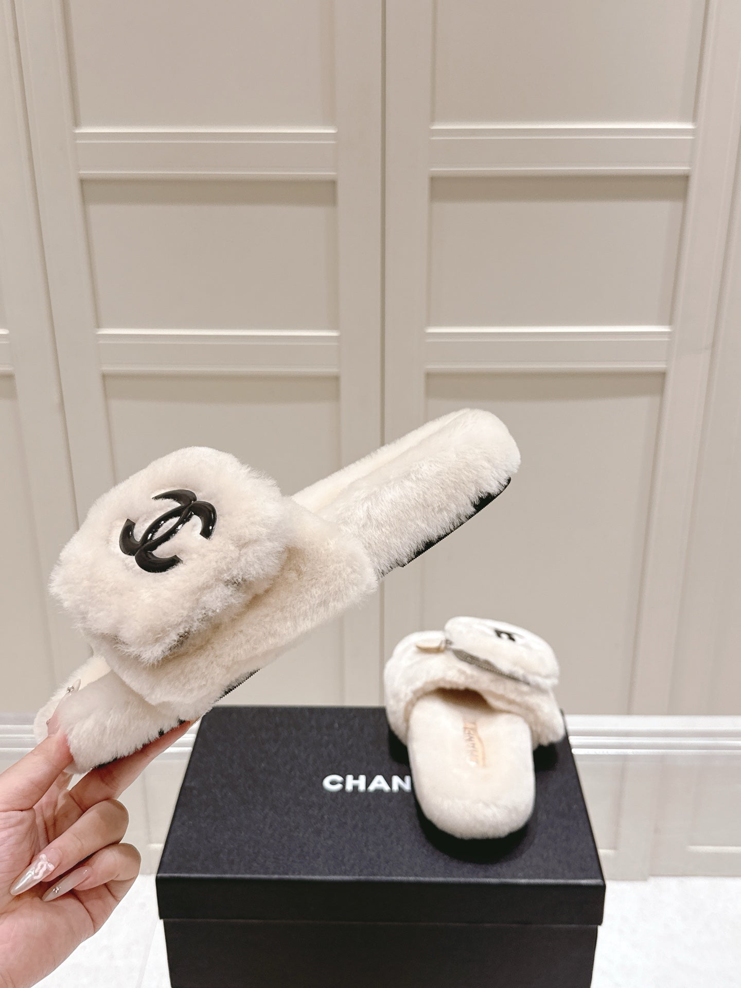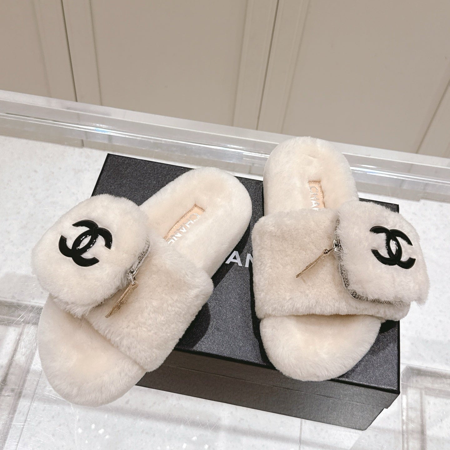 Chanel 25A Early Autumn Slippers Cream Wool 393077