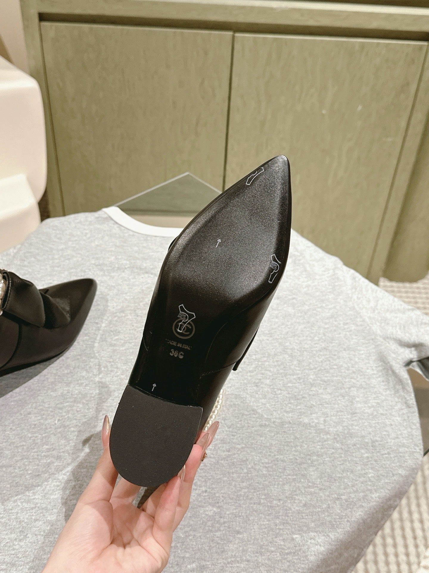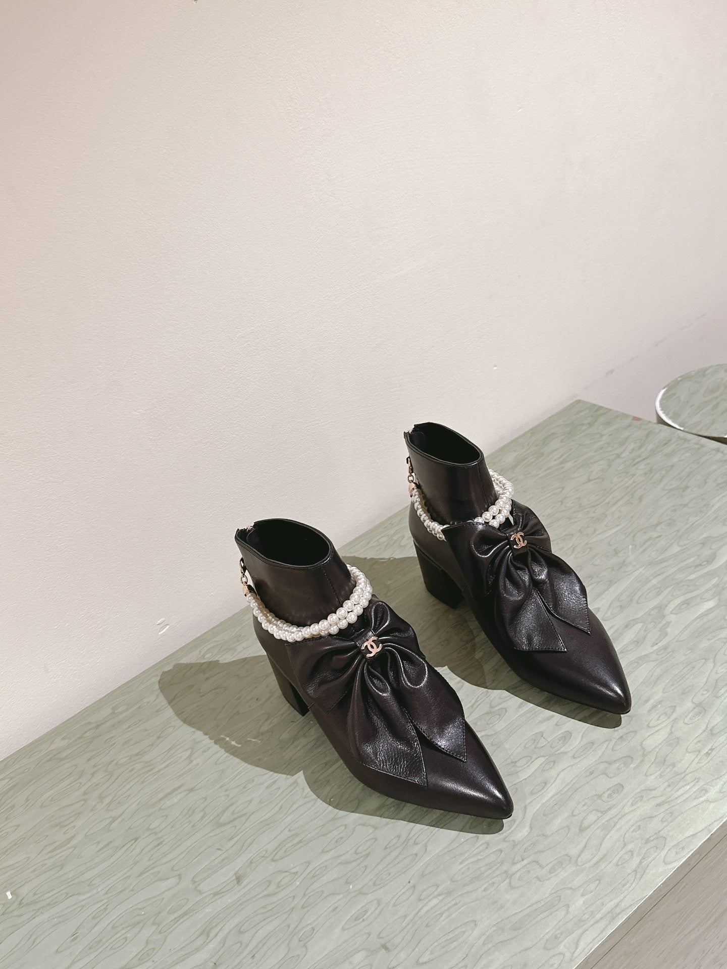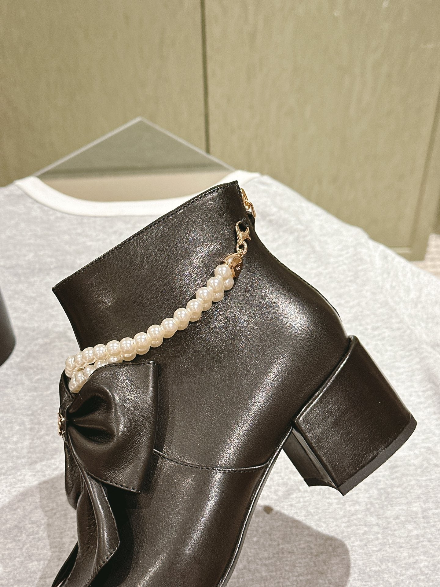 CC 24A Pearl Bow Ankle Boots 65mm Black Sheepskin 447468