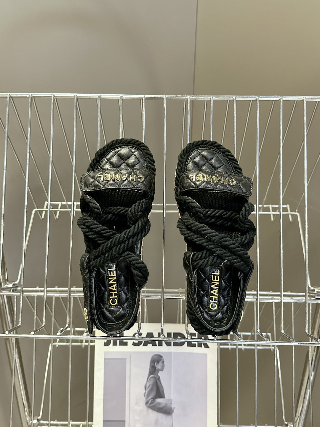 CC 25 Dad Sandals Black Rope and Sheepskin 473371