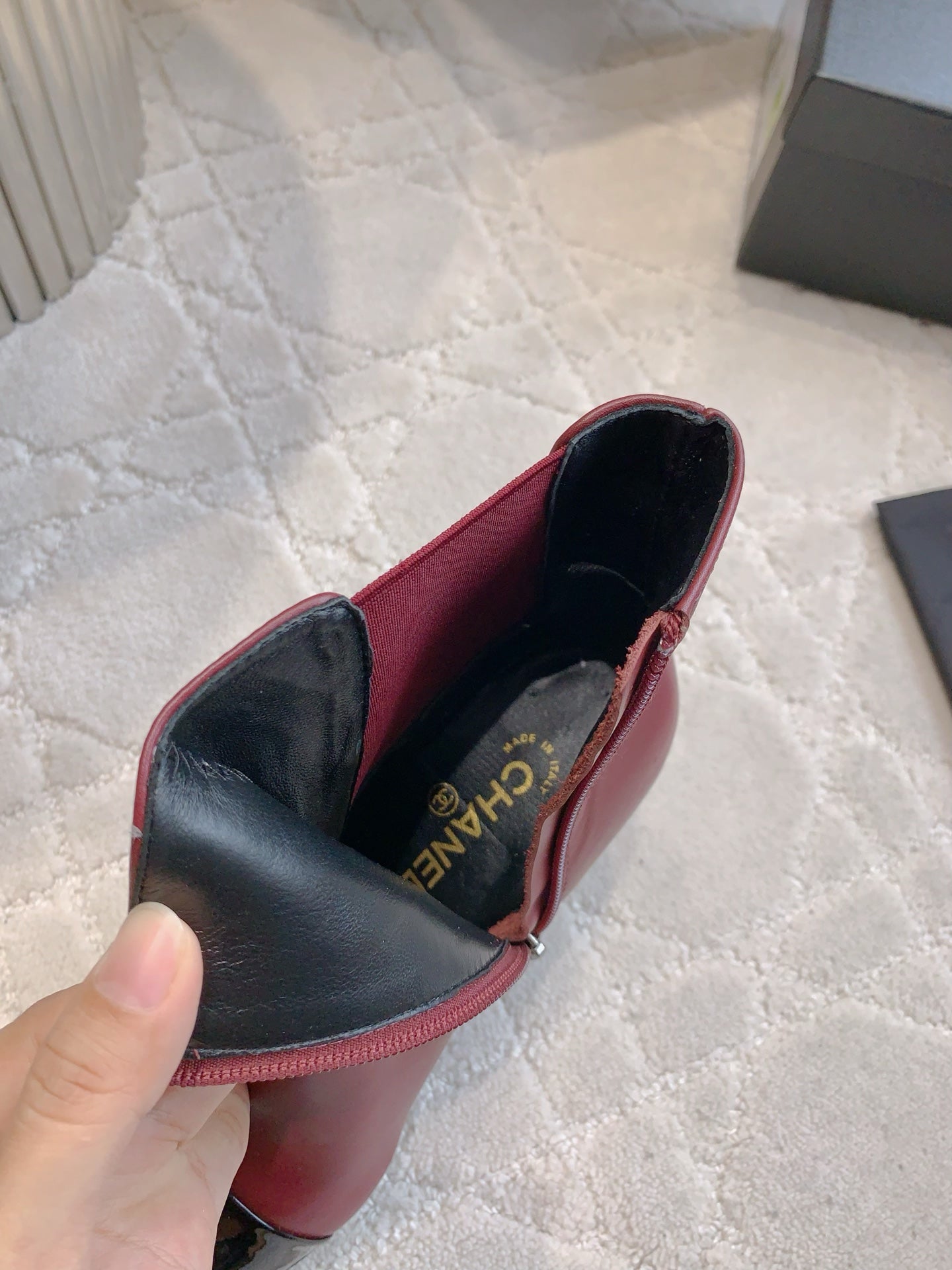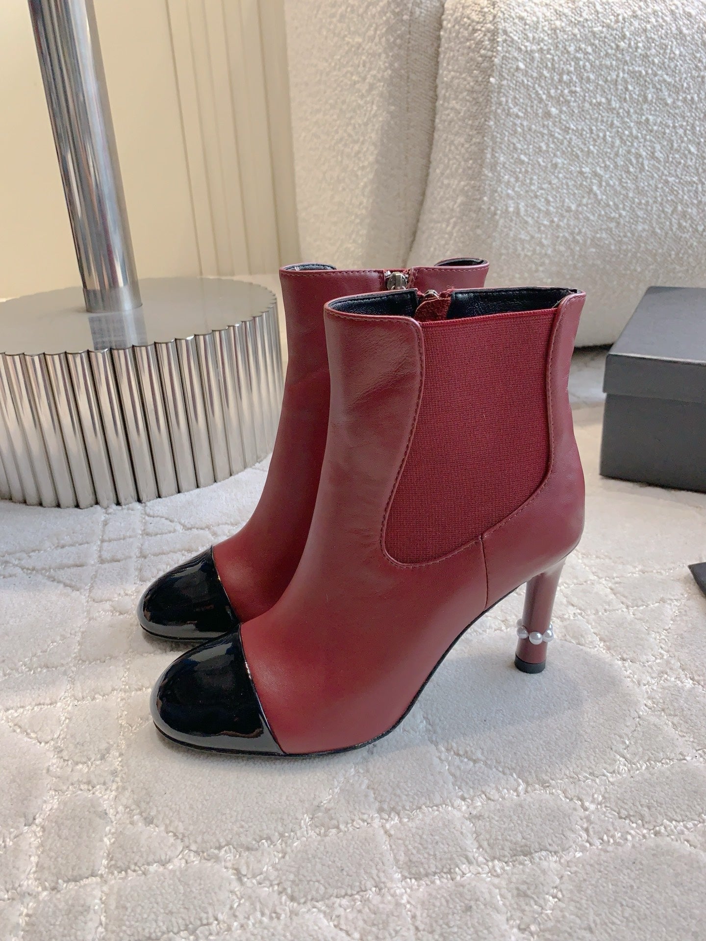 CC 25 Pearl Heel Boot Burgundy Black Calfskin 516654