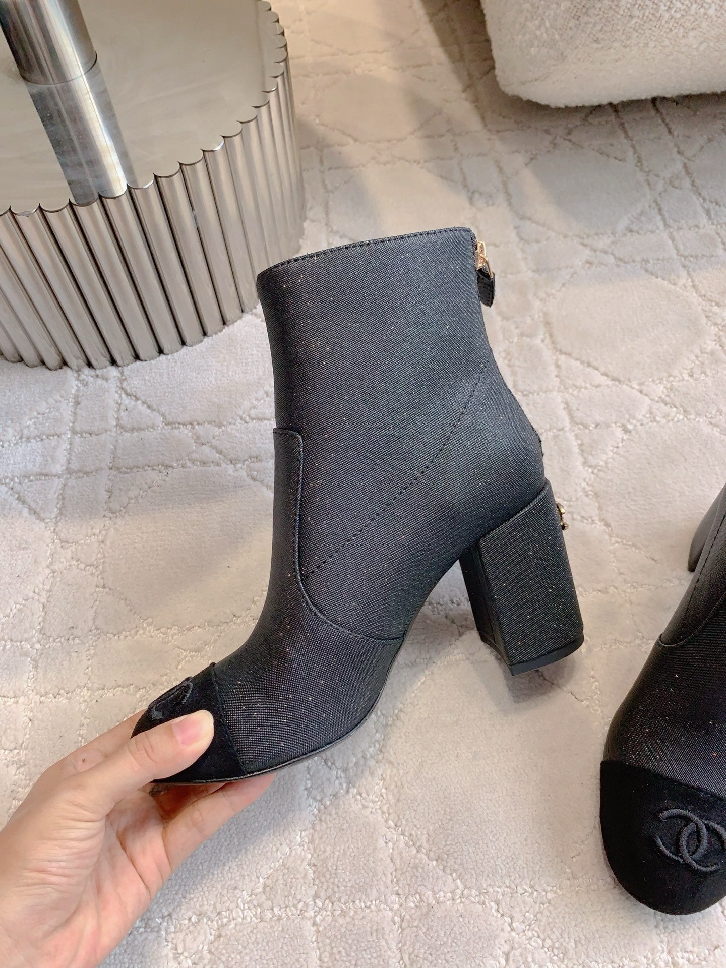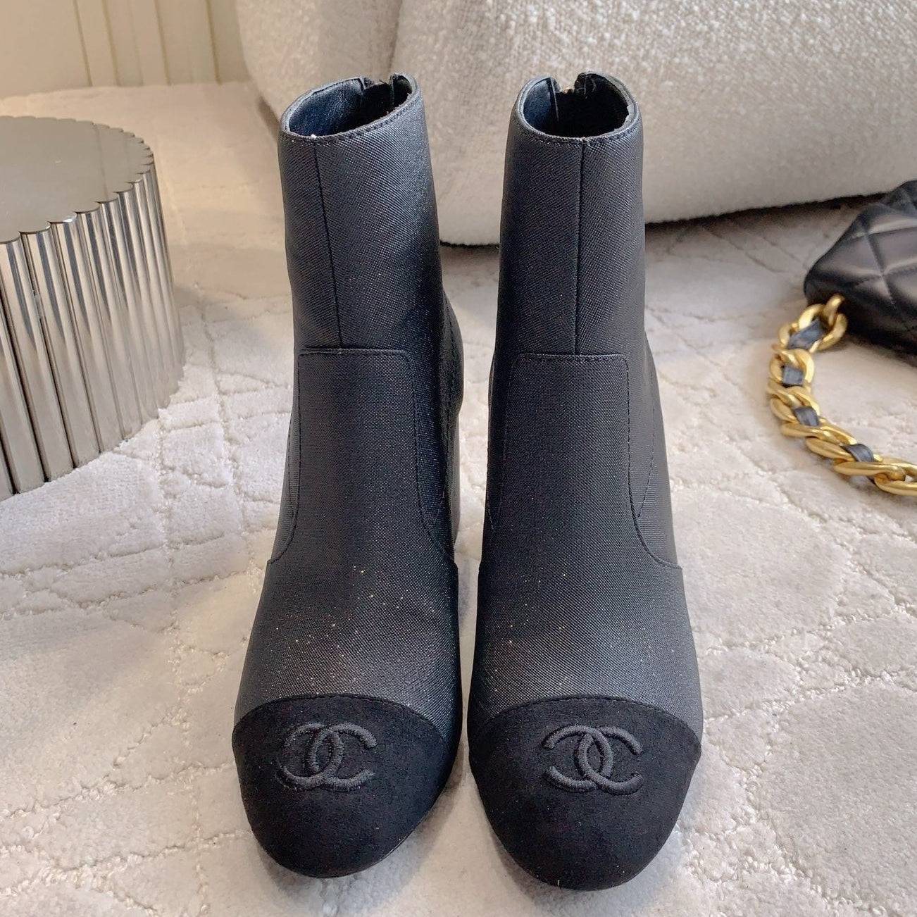 CC 25 Short Boot Black Fabric Sheepskin 516640