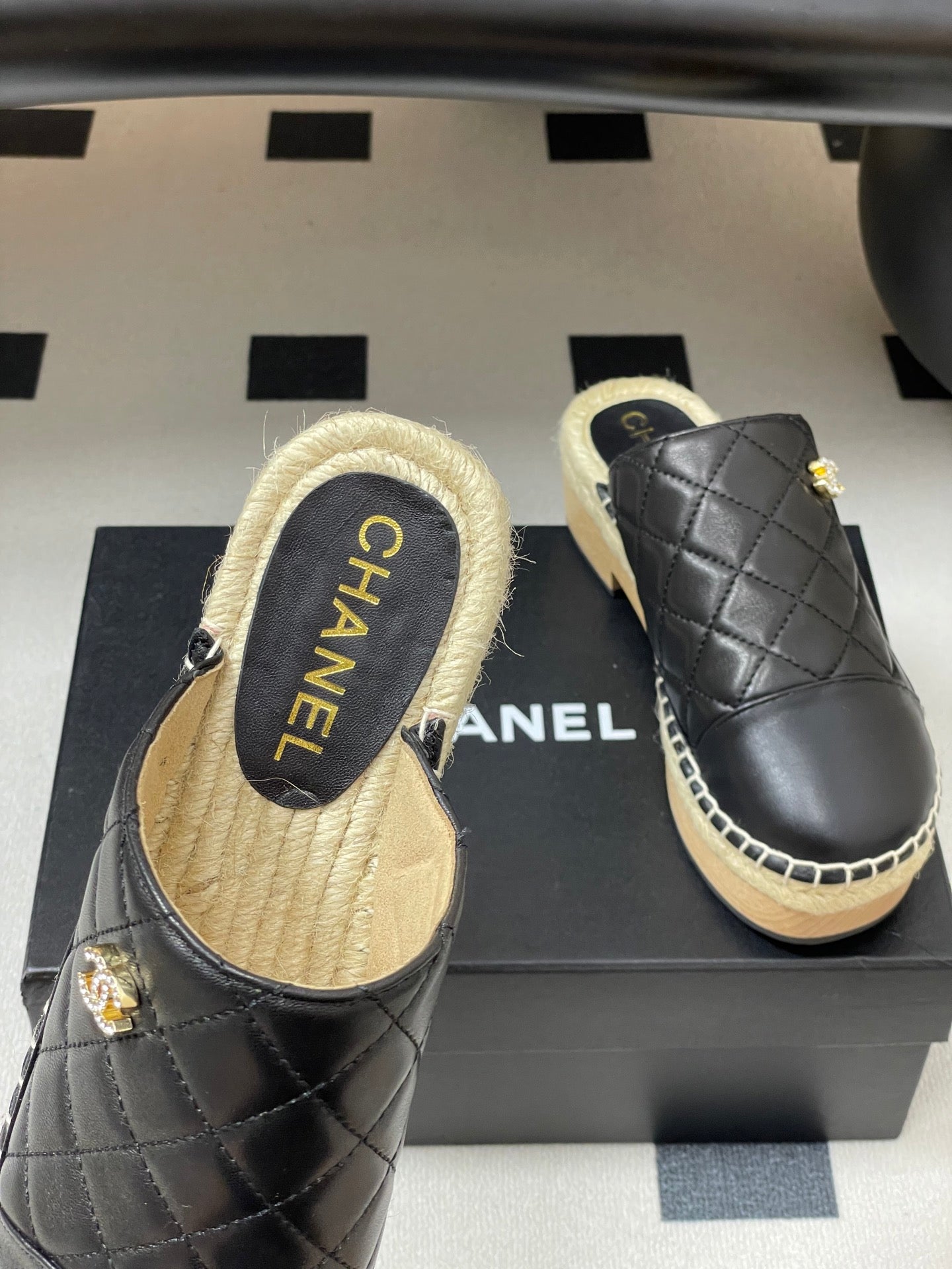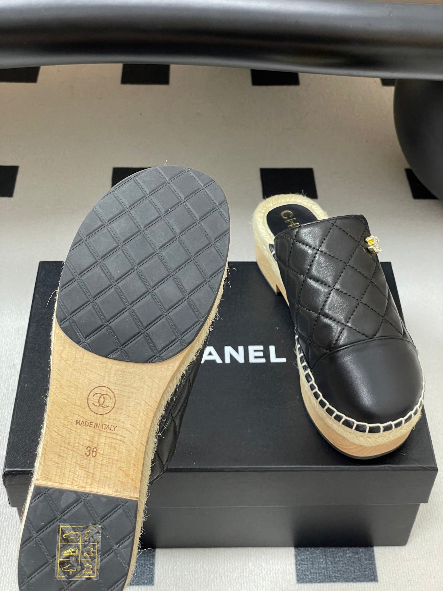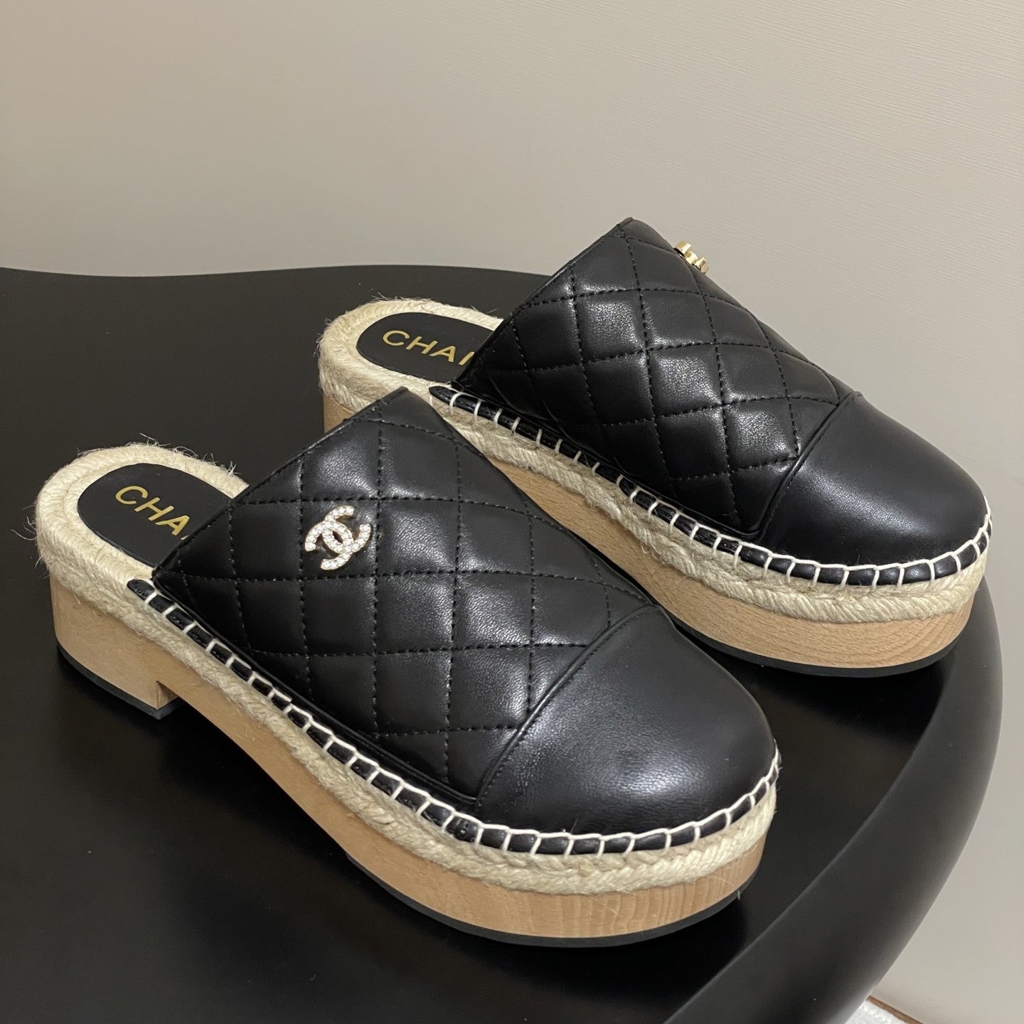 CC 25A Clog Slippers 40mm Black Quilted Lambskin 393951
